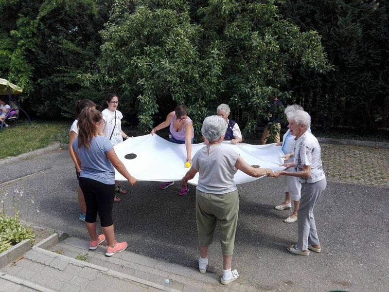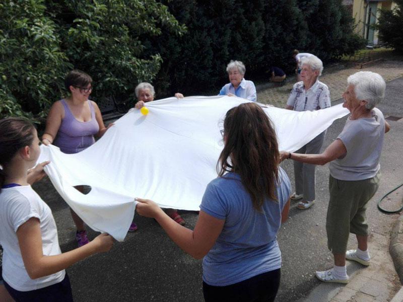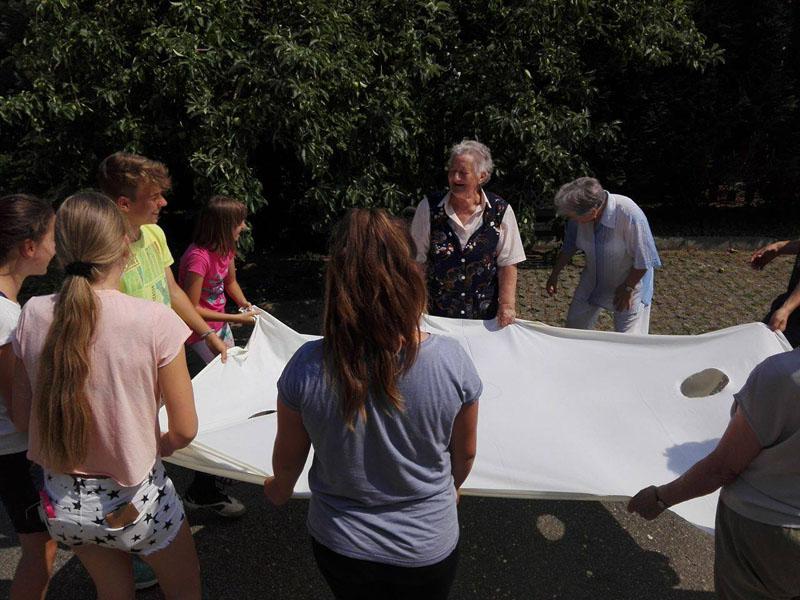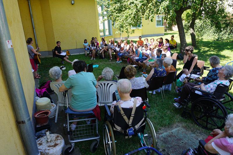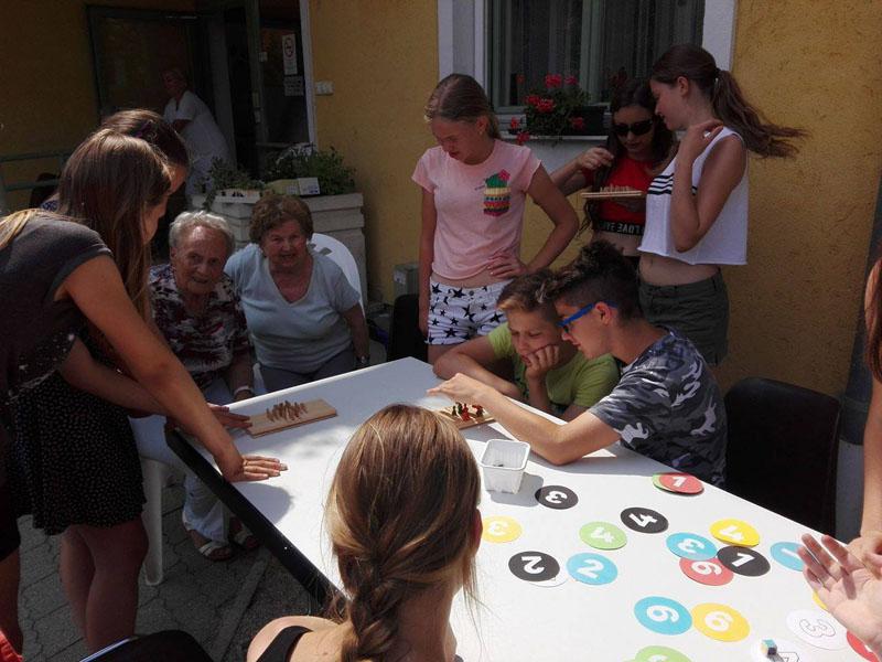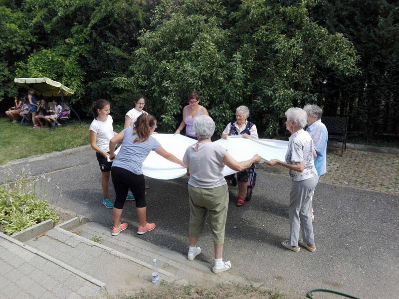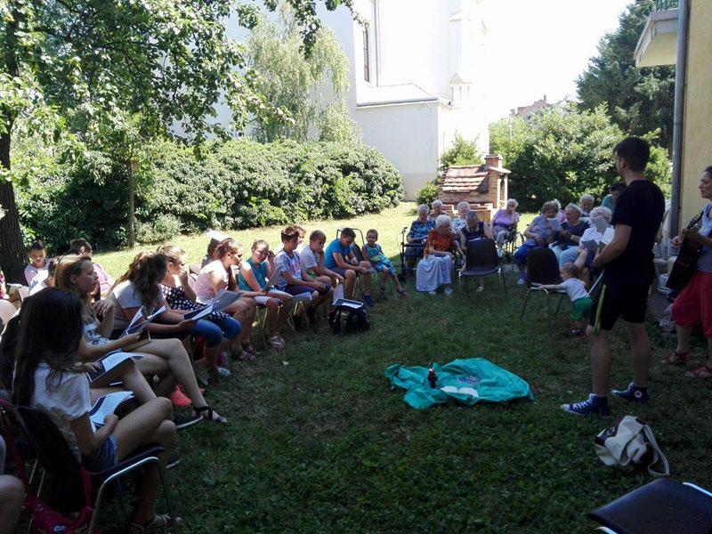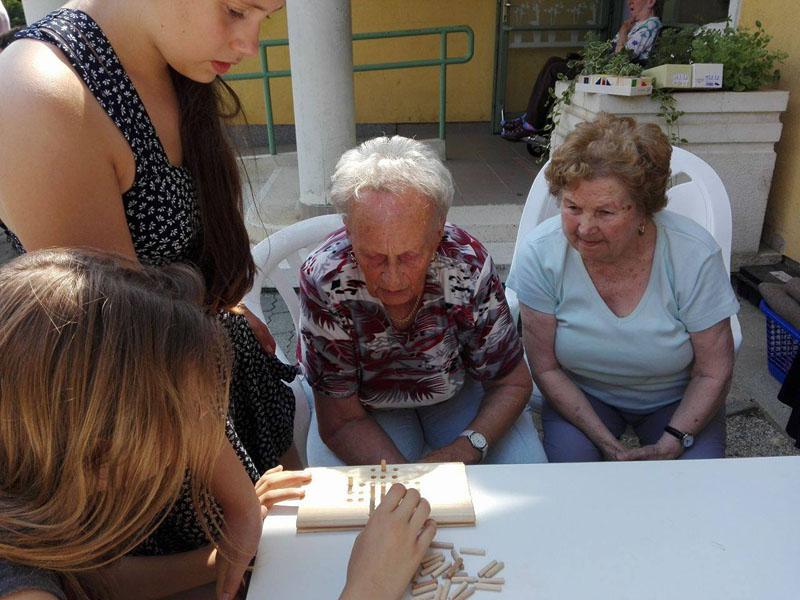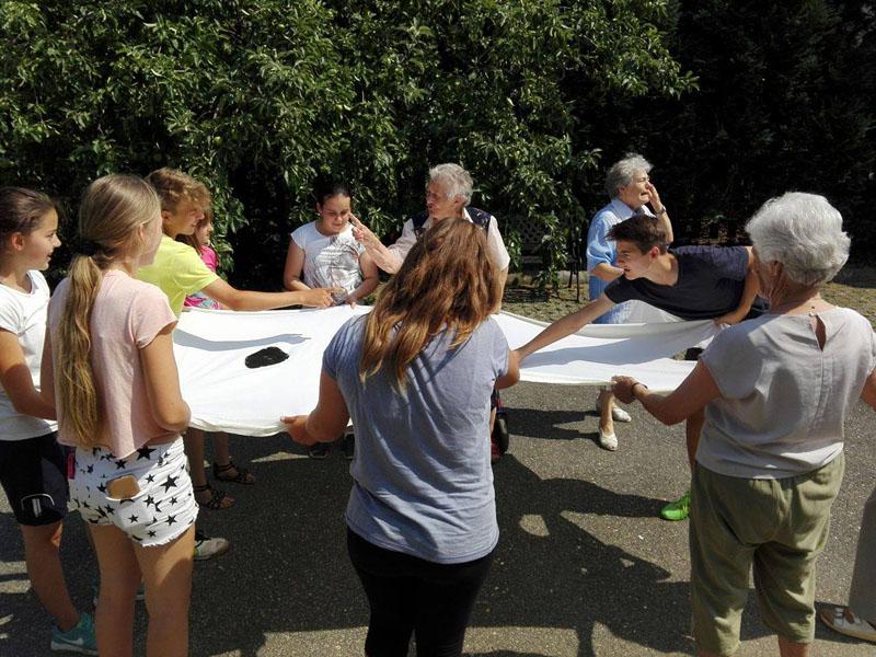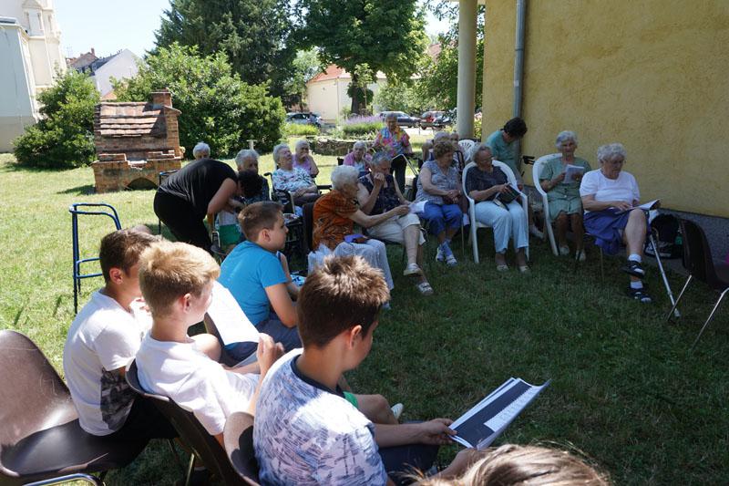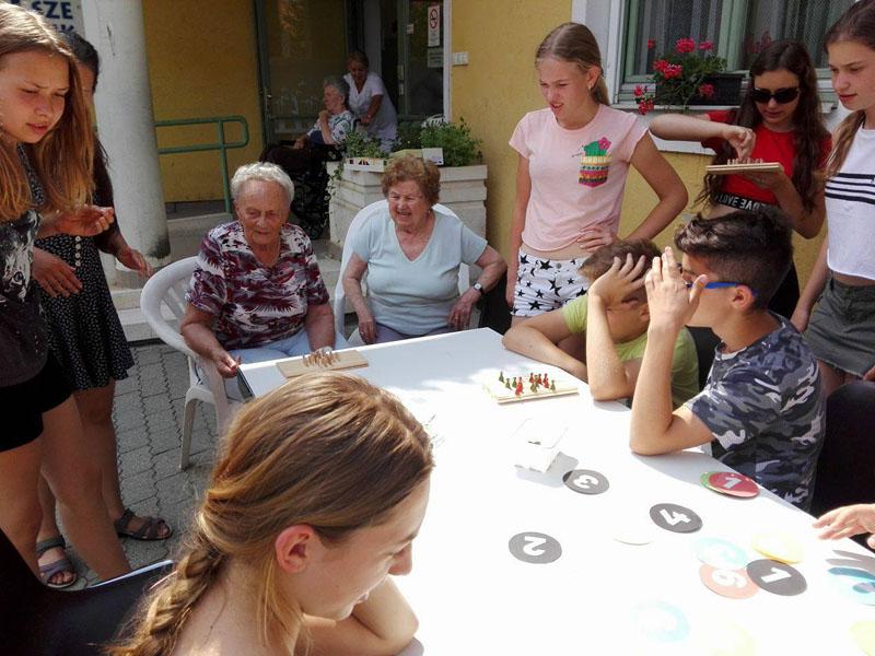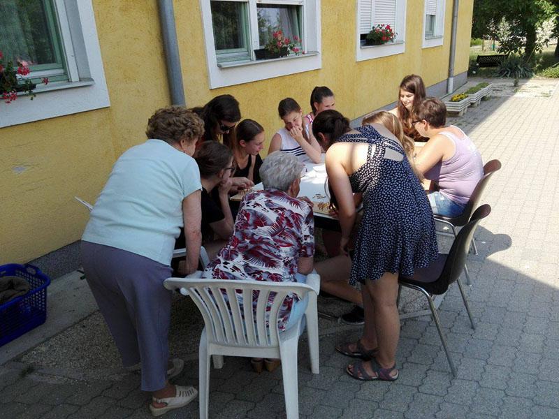 Az idei hittanos-konfirmandus táborban résztvevő felsős diákok több ízben is közös foglalkozáson vettek részt az idősotthon lakóival.
