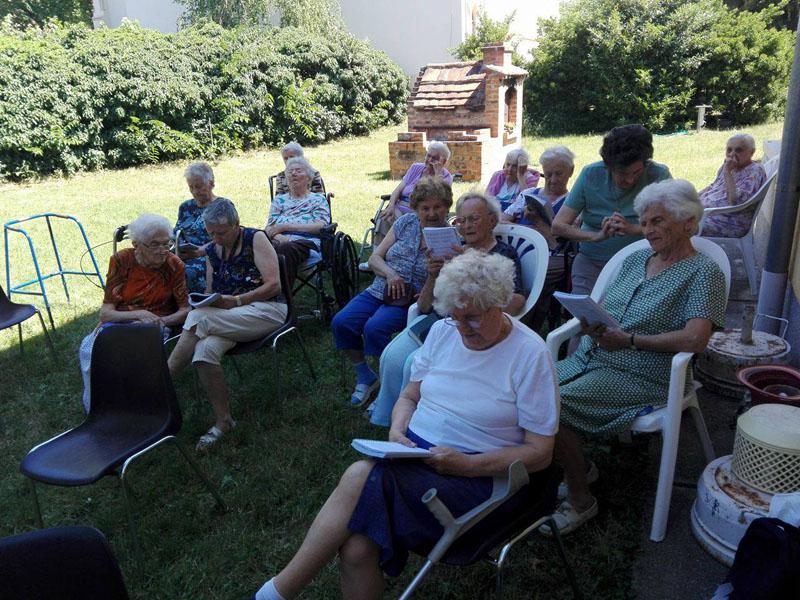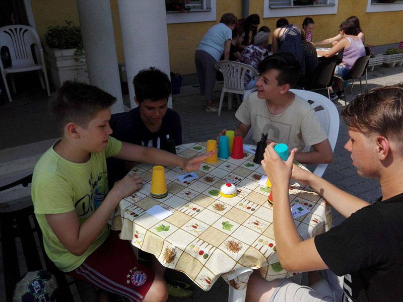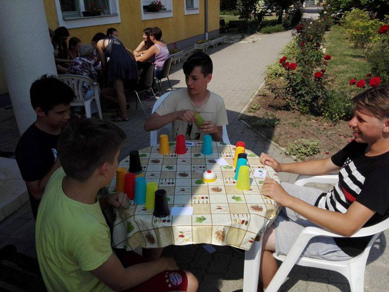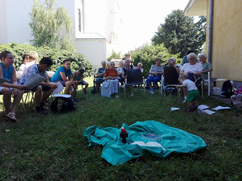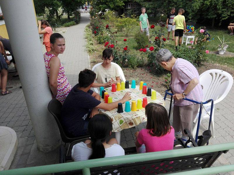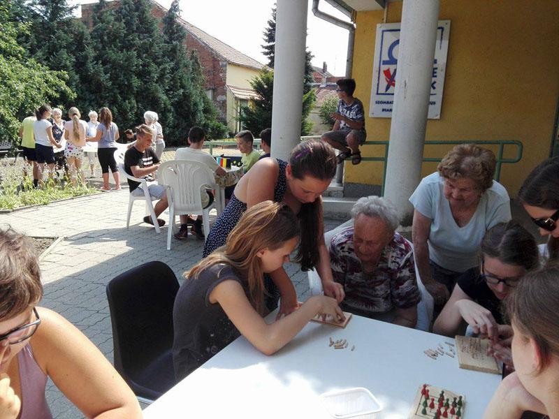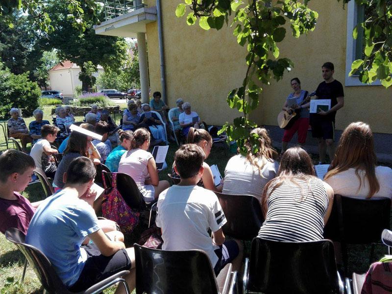 A tábor második napján egy közös áhitat volt a templomkertben, ahol Torma-Hasza Mónika és Menczinger Tamás vezetésével a fiatalok olvastak fel imádságokat, s együtt énekeltek az idősekkel. Egy másik napon pedig játékdélutánt tartottak az otthonban. Idősek és gyerekek egyaránt élvezték ezeket az alkalmakat, s maradandó élményt hozott számukra.