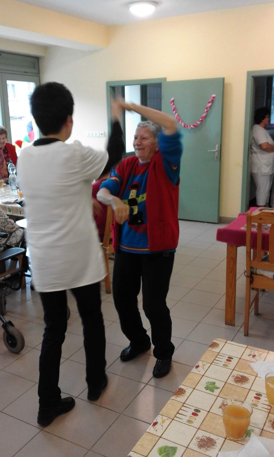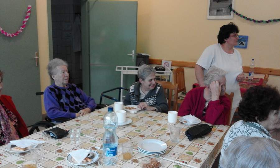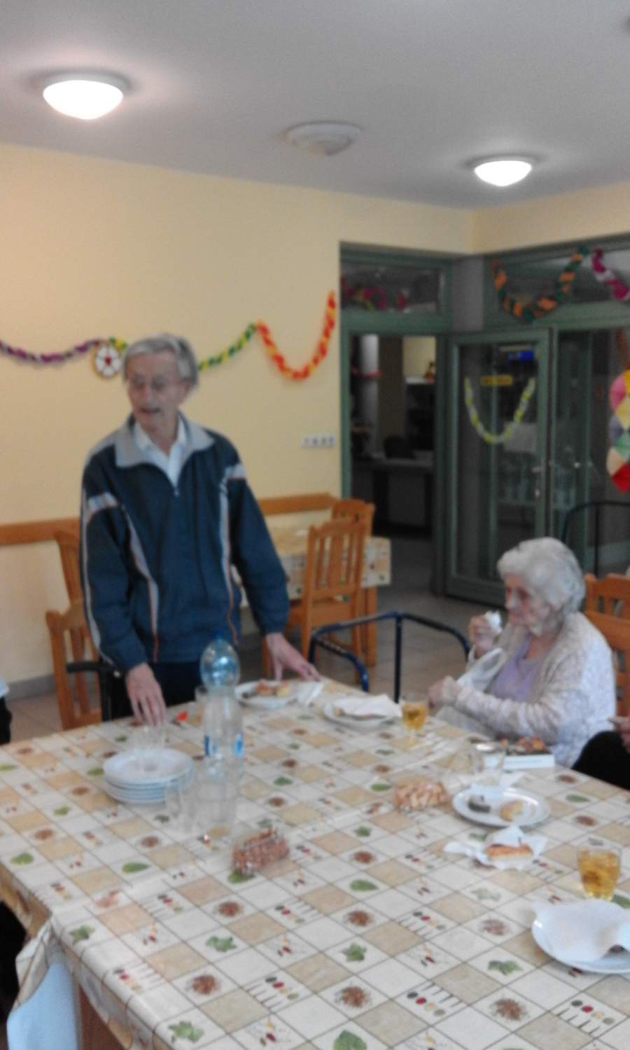 Az összejövetelen az időseken kívül részt vett vendégként Ambrus Tivadarné önkéntesünk, aki a kezdetektől fogva felolvasást tart az otthonban. A vidám alkalmon a régi kedvenc dalok közül válogattak az ápolók. Volt, aki még táncra is perdült.