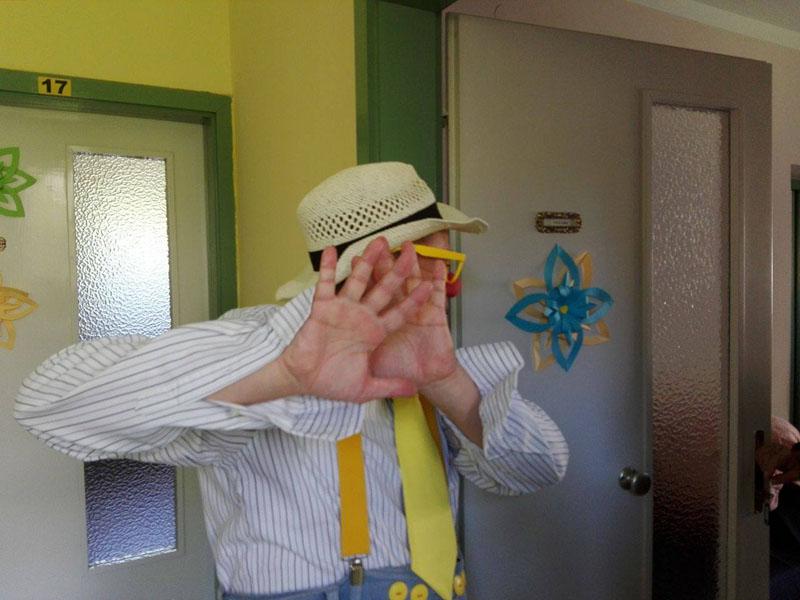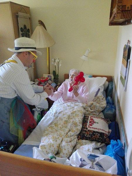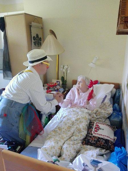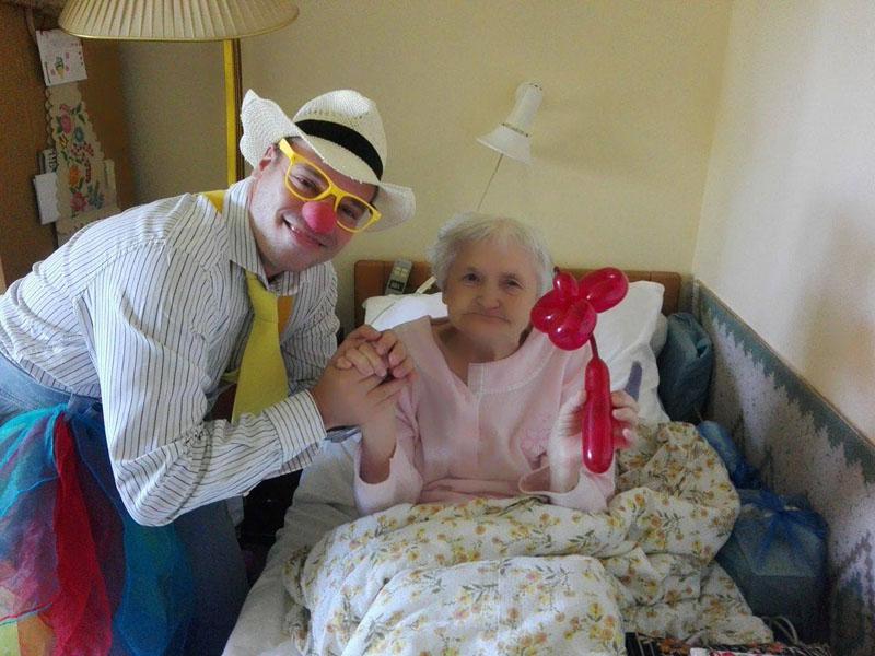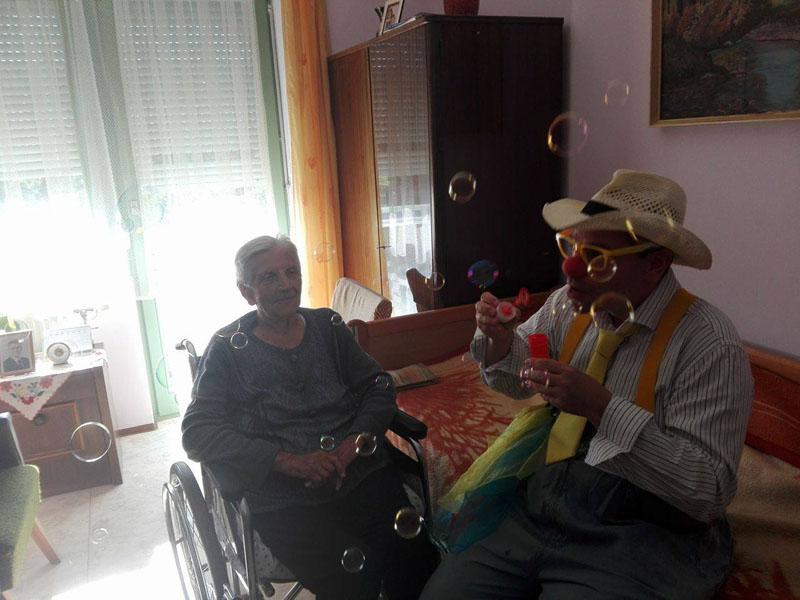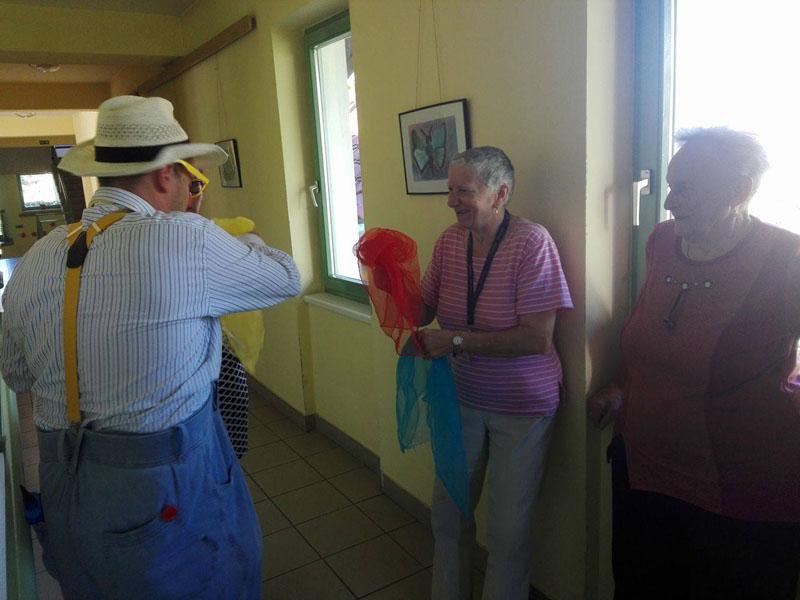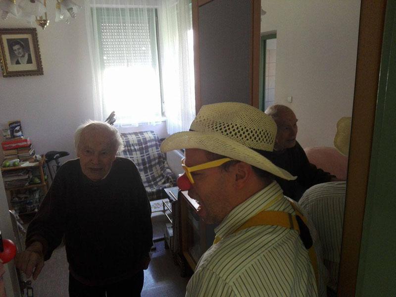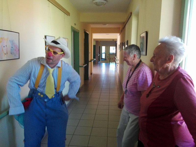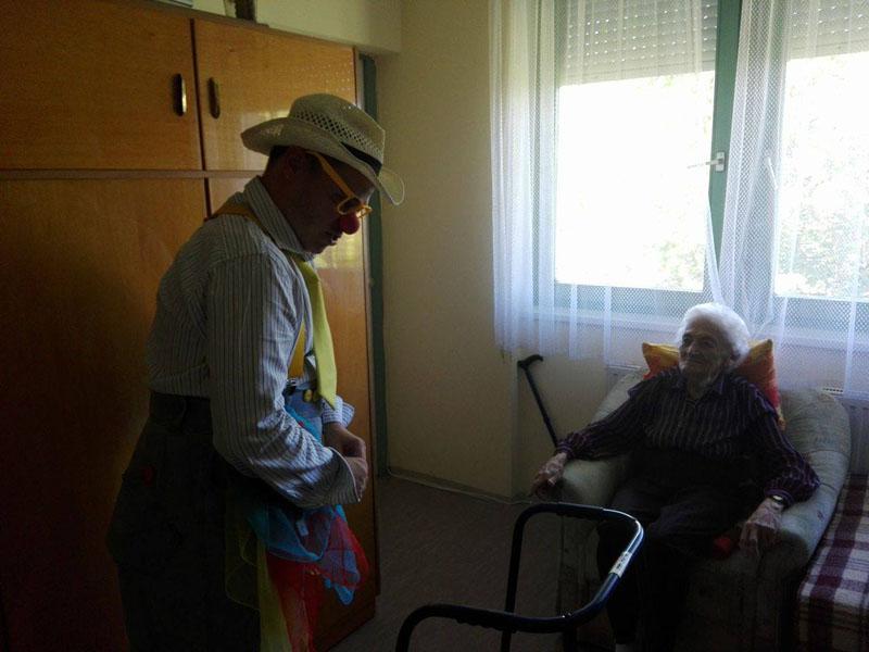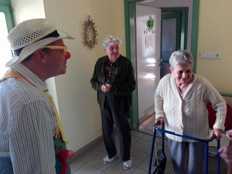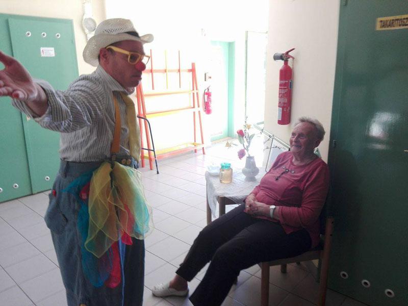 Vass Szilárd, a Dr. Bohóc Mosolyszolgálat vezetője volt a fő kolompos, sorra kérte fel a hölgyeket, menjenek hozzá feleségül. Az idősek partnerek voltak a bohóckodásban, nagyon vidám órát töltöttek együtt az alkalmi orvosokkal, akik énekeltek, szappanbuborékot fújtak, lufit hajtogattak és labdáztak is a lakókkal.