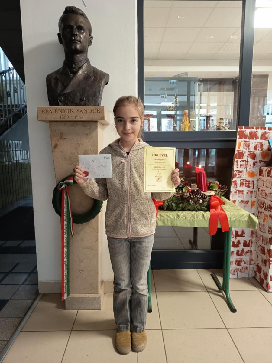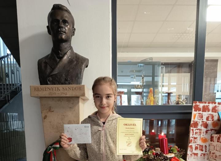 Szabó Janka első helyezést ért el a pápai Gyurátz Ferenc Evangélikus Általános Iskola és AMI Mesenapjához kötődő meseíró versenyen. Az idei évben a diákoknaknak a BÁTORSÁG témáját kellett beleszőniük az alkotásokba. Gratulálunk!