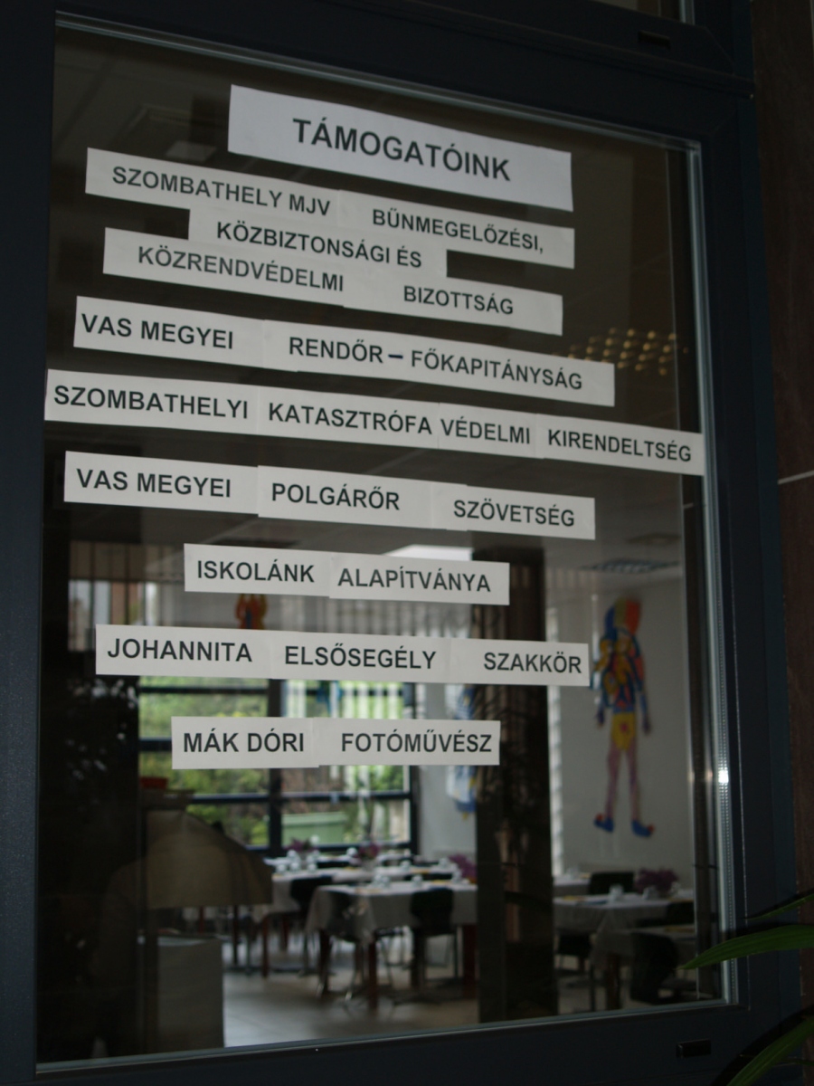 A versenyt a Vas Megyei Önkormányzat Balesetmegelőzési Bizottsága, a Vas Megyei Rendőr-főkapitányság, a Vas Megyei Katasztrófavédelmi Igazgatóság, iskolánk Johannita elsősegély szakköre és alapítványa támogatta.
