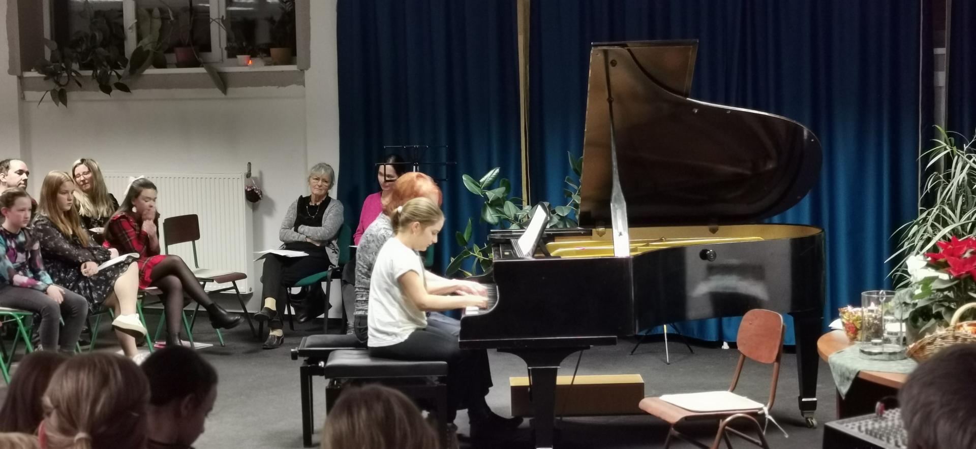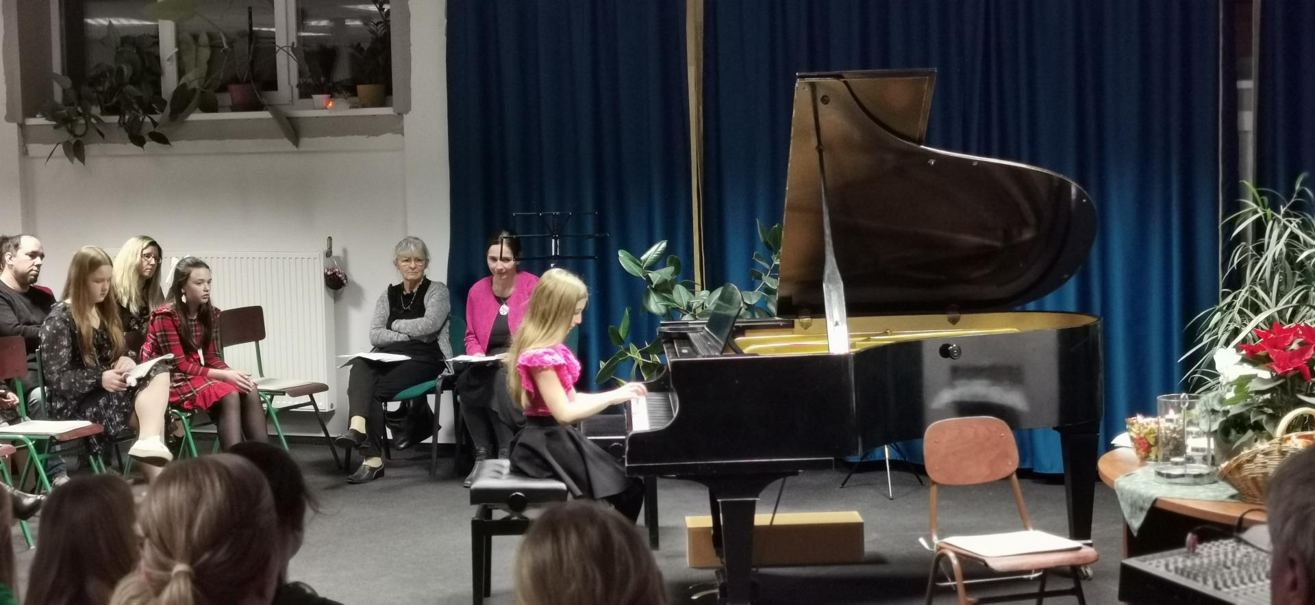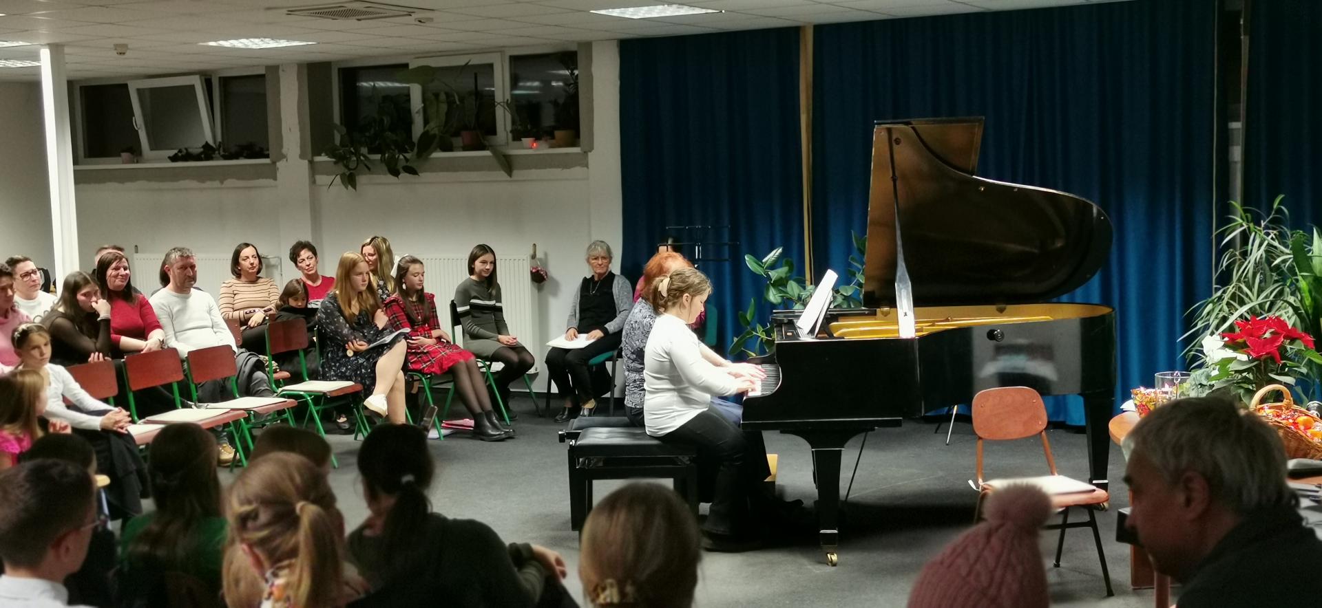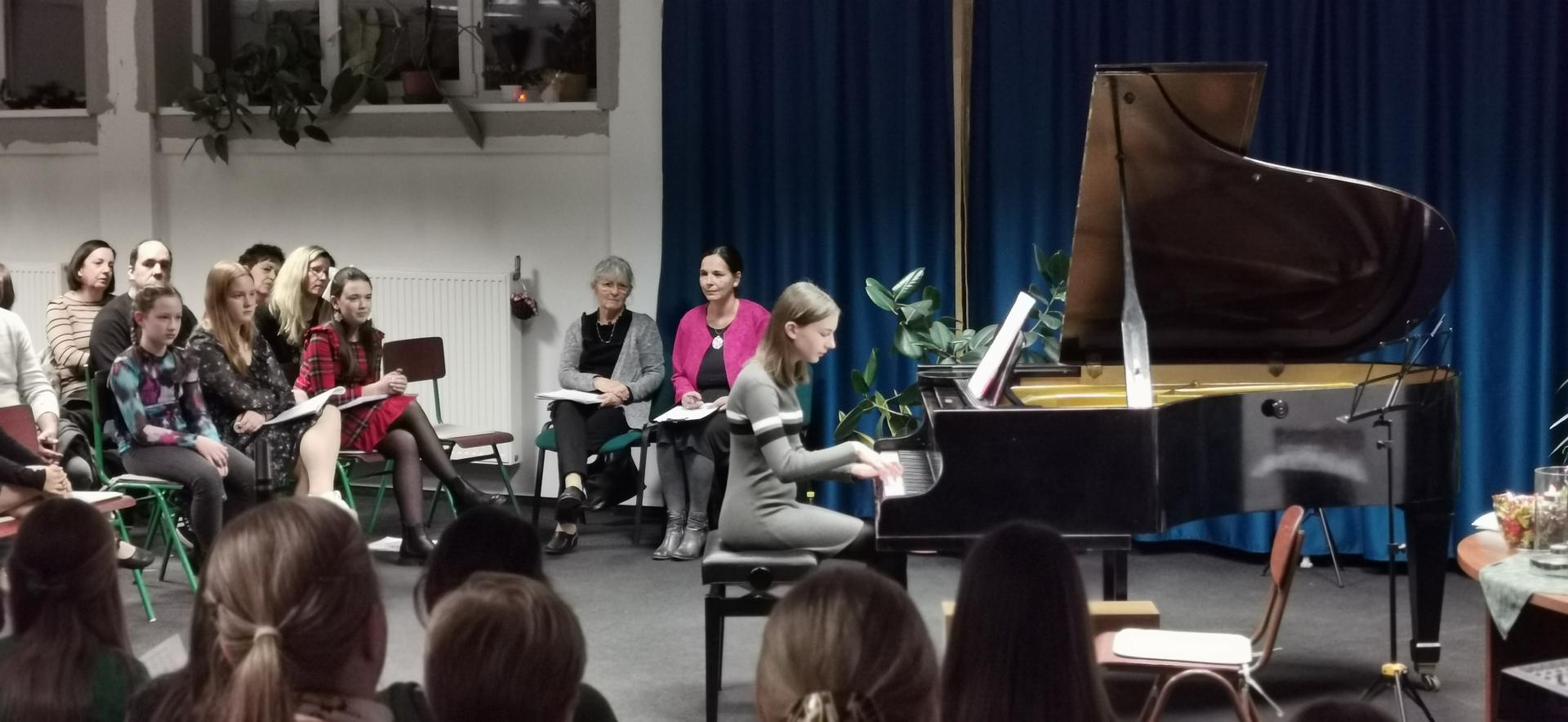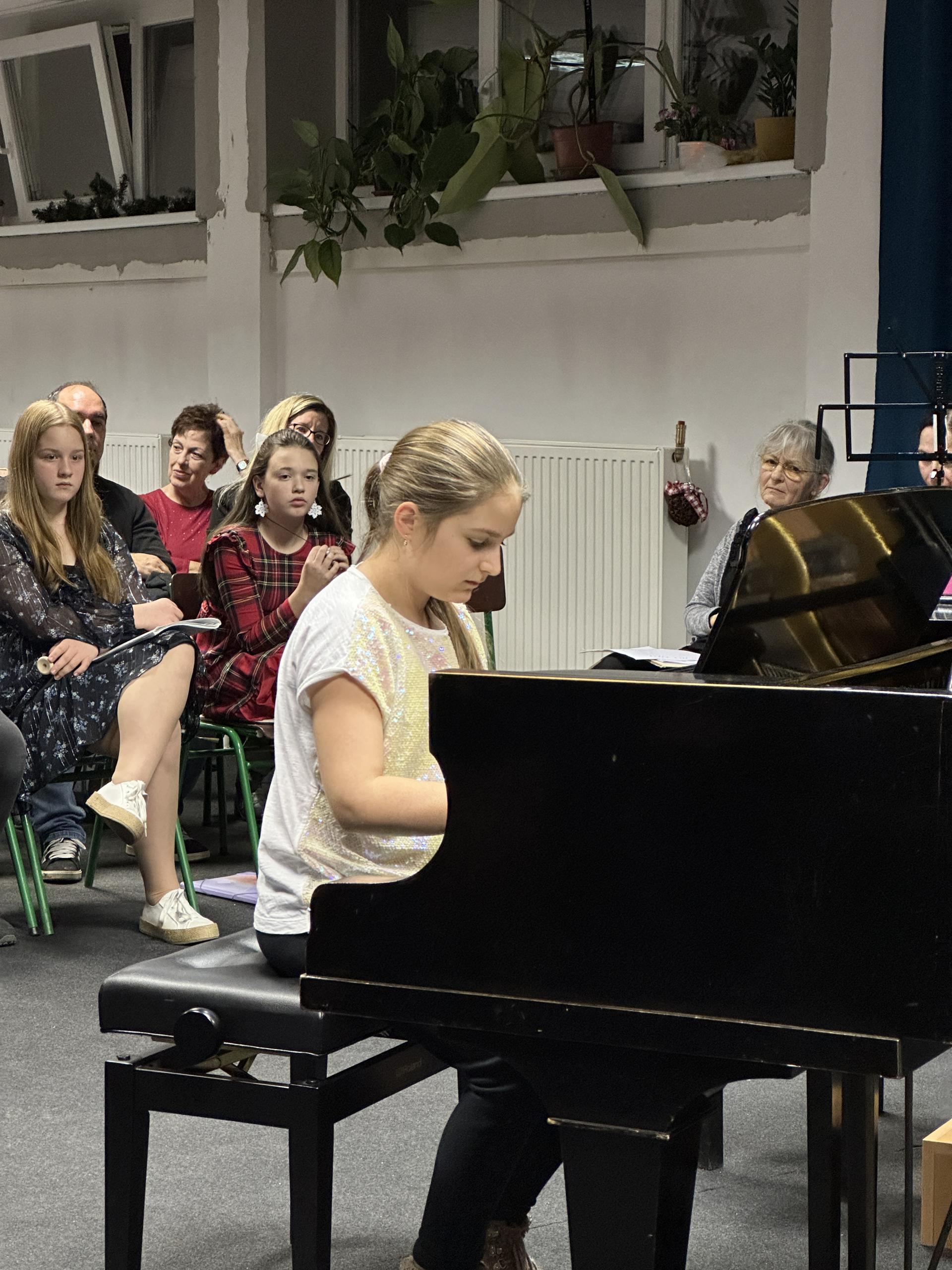 Iskolánk idei adventi növendékhangversenye is nagyszerűen sikerült. A kék szalon megtelt családokkal, akik kíváncsian várták, hogy meghallgassák a gyerekek játékát – sokan közülük most léptek fel először közönség előtt.