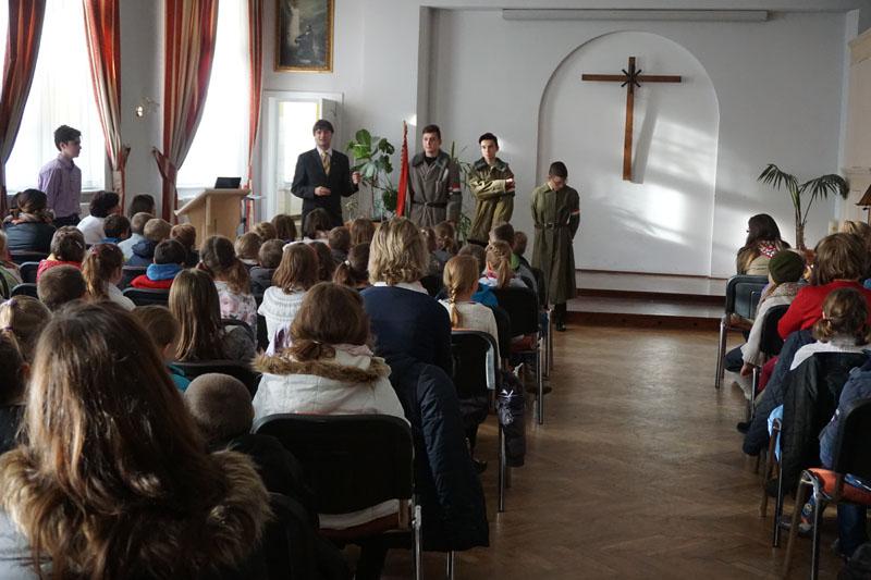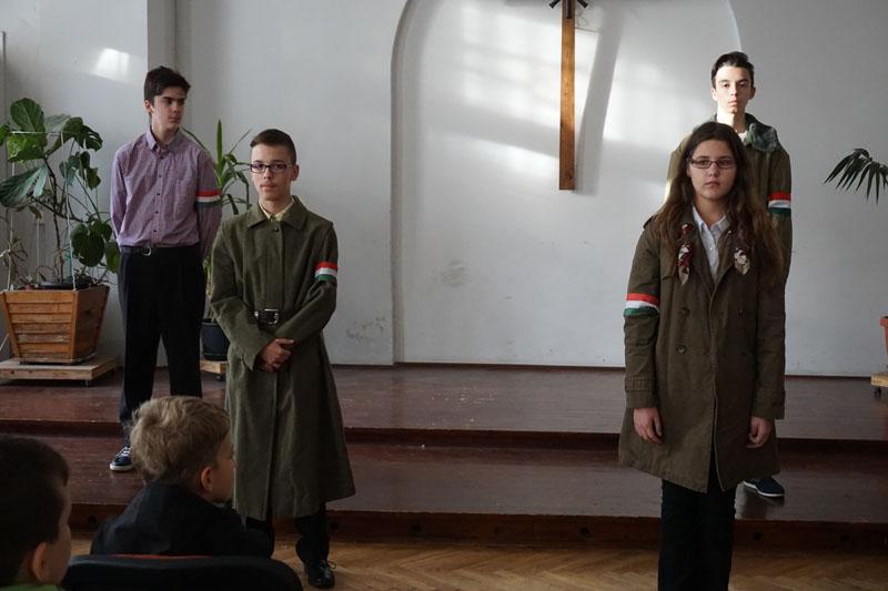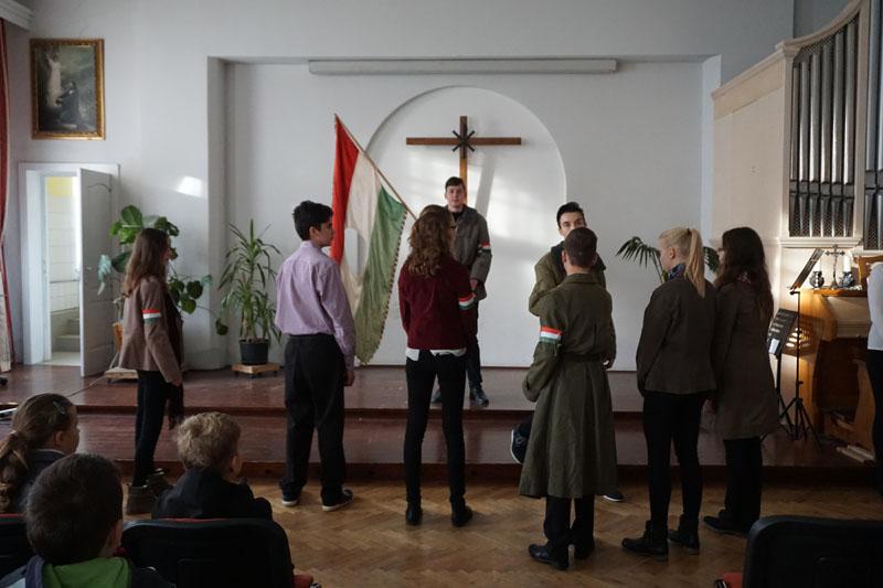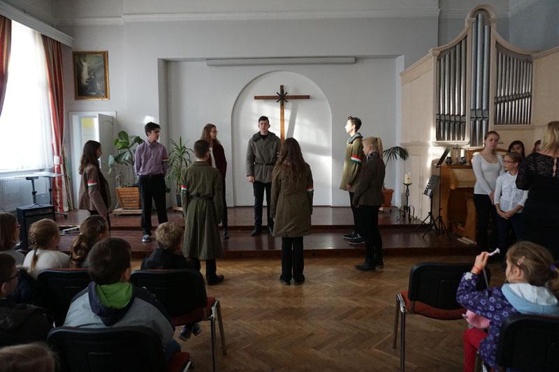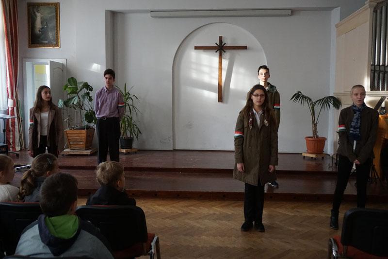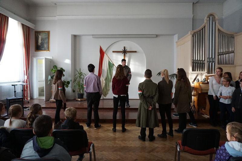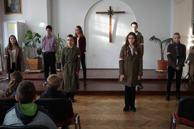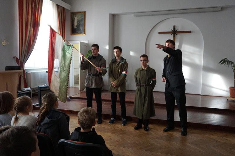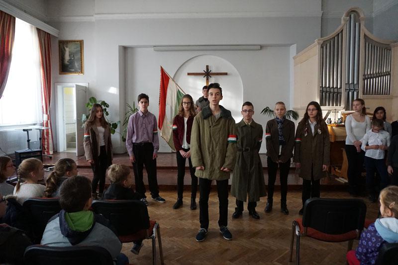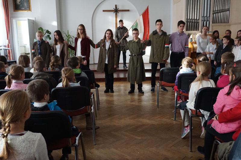 Hétfőn emlékezett meg iskolánk az 1956-os eseményekről. A hatvanadik évfordulón először az alsósok, majd a felsősök vehettek részt végzőseink ünnepi műsorán, melyet rendhagyó történelemóra zárt.