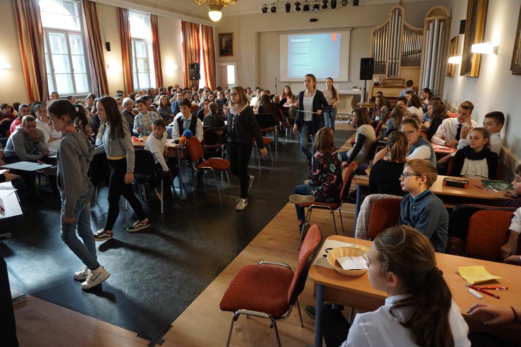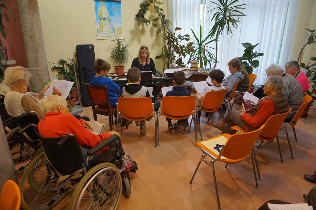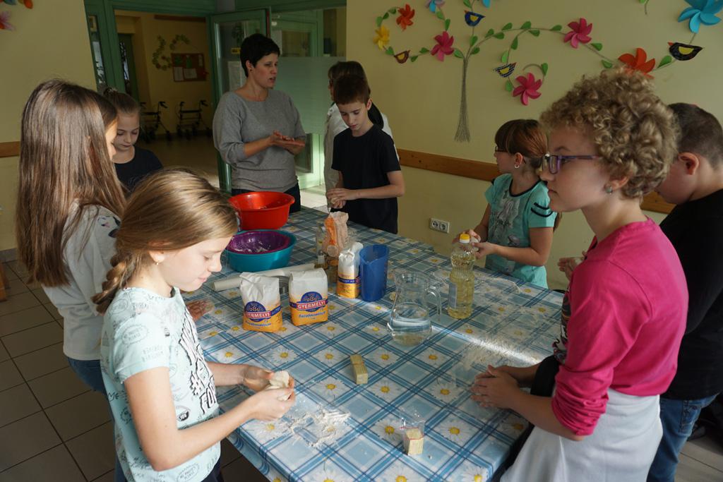 Az 5. évfolyam egy érzékenyítő napot töltött együtt a Túróczy Otthon lakóival, ahol az érzkszervek, az érzékelés állt a középpontban. Kisebb csoportokban járták végig a különböző foglalkozásokat. Csendsétán vehettek részt a templomban; kipróbálhatták, milyen kerekes székkel közlekedni; langallót készíthettek; közösen énekeltek, rajzoltak, s emellett a Szent György Gyógynövénykert növényeiből teafiltert készítettek.