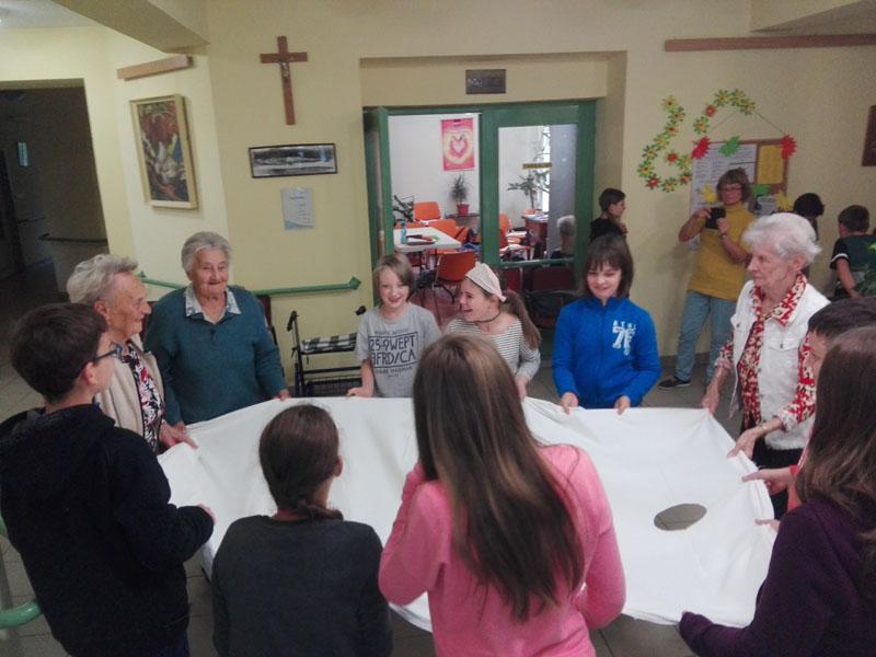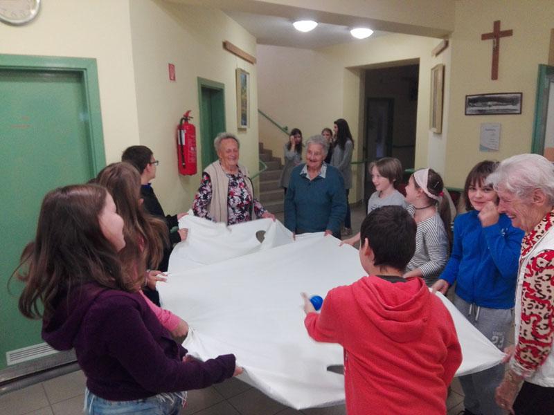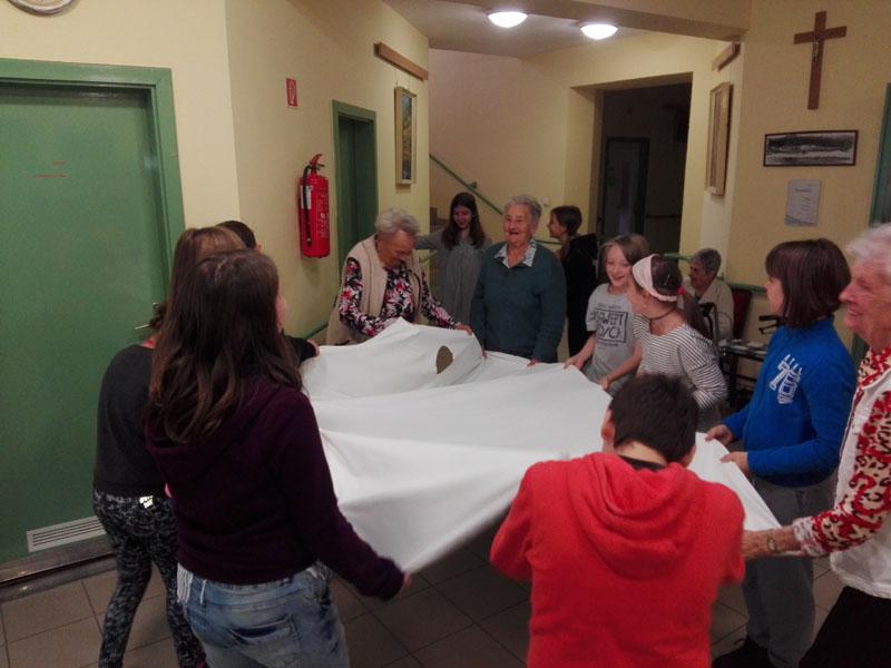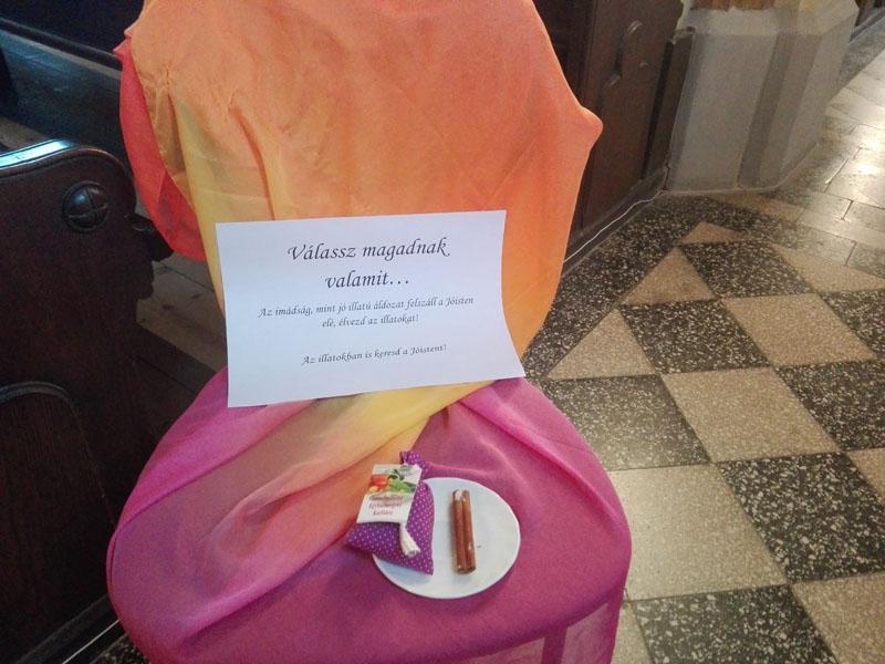 A nap középpontjában az érzékszerveink álltak. A reggelt közös áhítattal kezdtük, Menczinger Tamás teológus hallgató Isten igéjén keresztül hívta fel a figyelmet az érzékszerveinkre, illetve azok működési zavarainak, hiányának következményeire. Ezt követően idősek és gyerekek együtt tekintették meg a Pillangó cirkusz című filmet, melynek főszereplője Nick Vujicic, aki nemzetközi hírű prédikátor, szónok, motivációs tréner, aki a karok és lábak nélkül született emberként vált híressé. Előadásainak témái a fogyatékosság, a remény és a keresztény hit. Majd idősek és gyermekek együtt 5 csapatot alkottak , s együtt gondolkoztak egy-egy érzékszervet illetően. Készült termésből szemet formáló kép, illatzsák a résztvevőknek, matatókocka az időseknek, s dolgos kezek munkájának eredménye volt a friss meleg kenyérlángos, s az alkotás ideje alatt gyönyörű népdalok, énekek varázsoltak el mindannyiunkat. A csoportmunkával párhuzamosan a gyermekek egymást váltva egy Csendsétán is részt vehettek a templomban, amely több állomásból állt, s segített, hogy pár percre csak egy érzékszervünkre figyeljünk, s érezzünk ízeket, illatokat, tapintsunk töviskoszorút, halljunk muzsikát, csendesedjünk el egy imára, s egy fotelban ülve érezzük, ahogy átölel az Isten. A délelőtt folyamán a gyerekek kipróbálhatták az idősek segédeszközeit, így kerekesszékkel, rolátorral és járókerettel közlekedtek a folyosón. Idősek és gyerekek együtt játszottak különböző logikai fajátékokkal, s a délelőttöt egy fergeteges hangulatú idős-fiatal lepedőfoci verseny zárta. A délután folyamán az idősek is megtapasztalhatták a Csendséta csodáját. Megérintett ez a nap időst és fiatalt egyaránt, egymástól tanultunk, egymásba kapaszkodhattunk, egymásból meríthettünk erőt. Figyeltünk egymásra, figyeltünk Istenre.