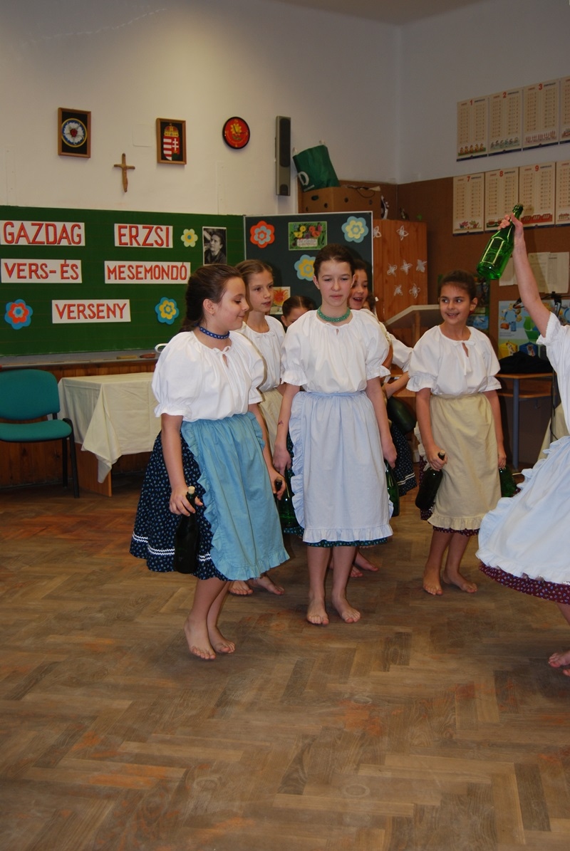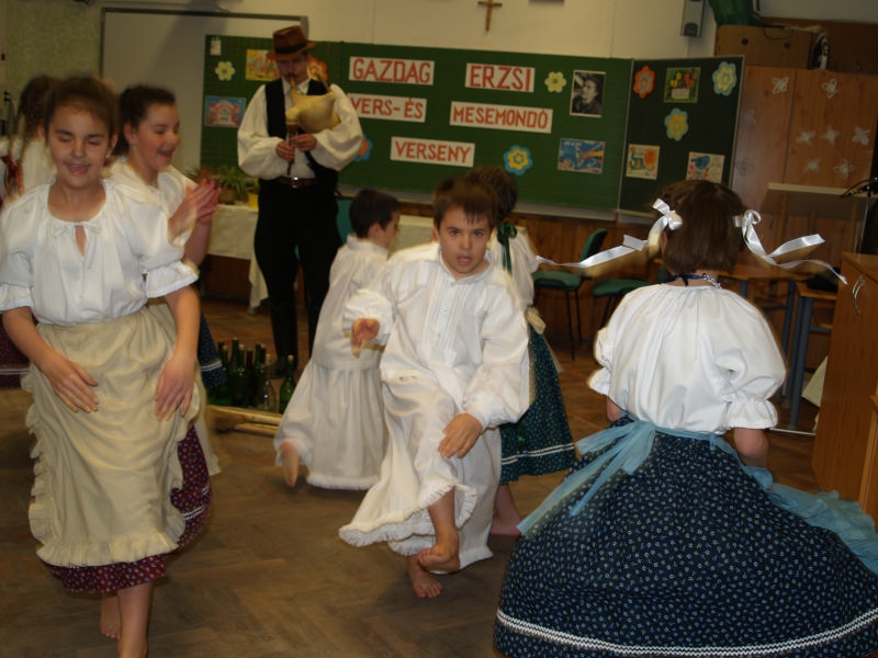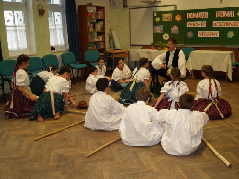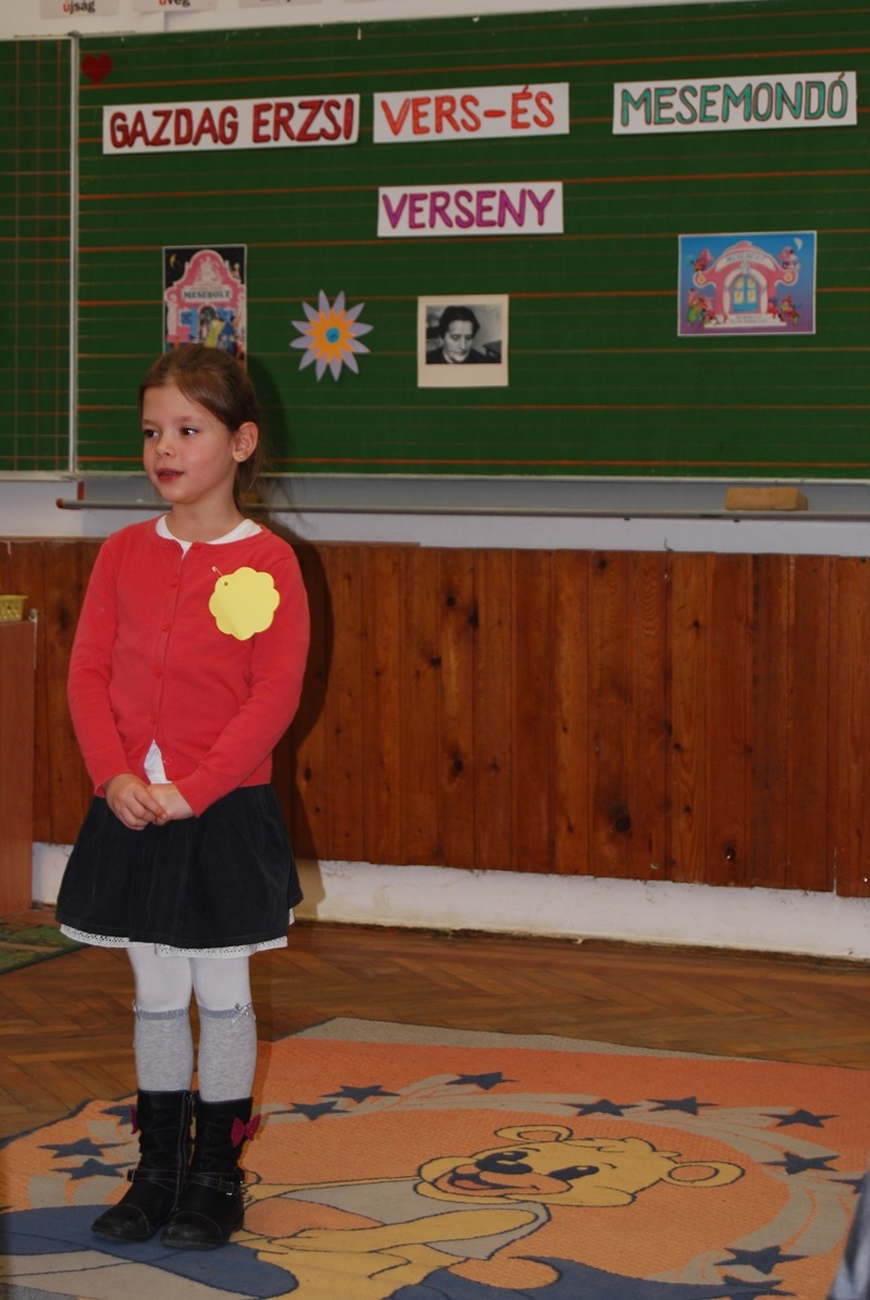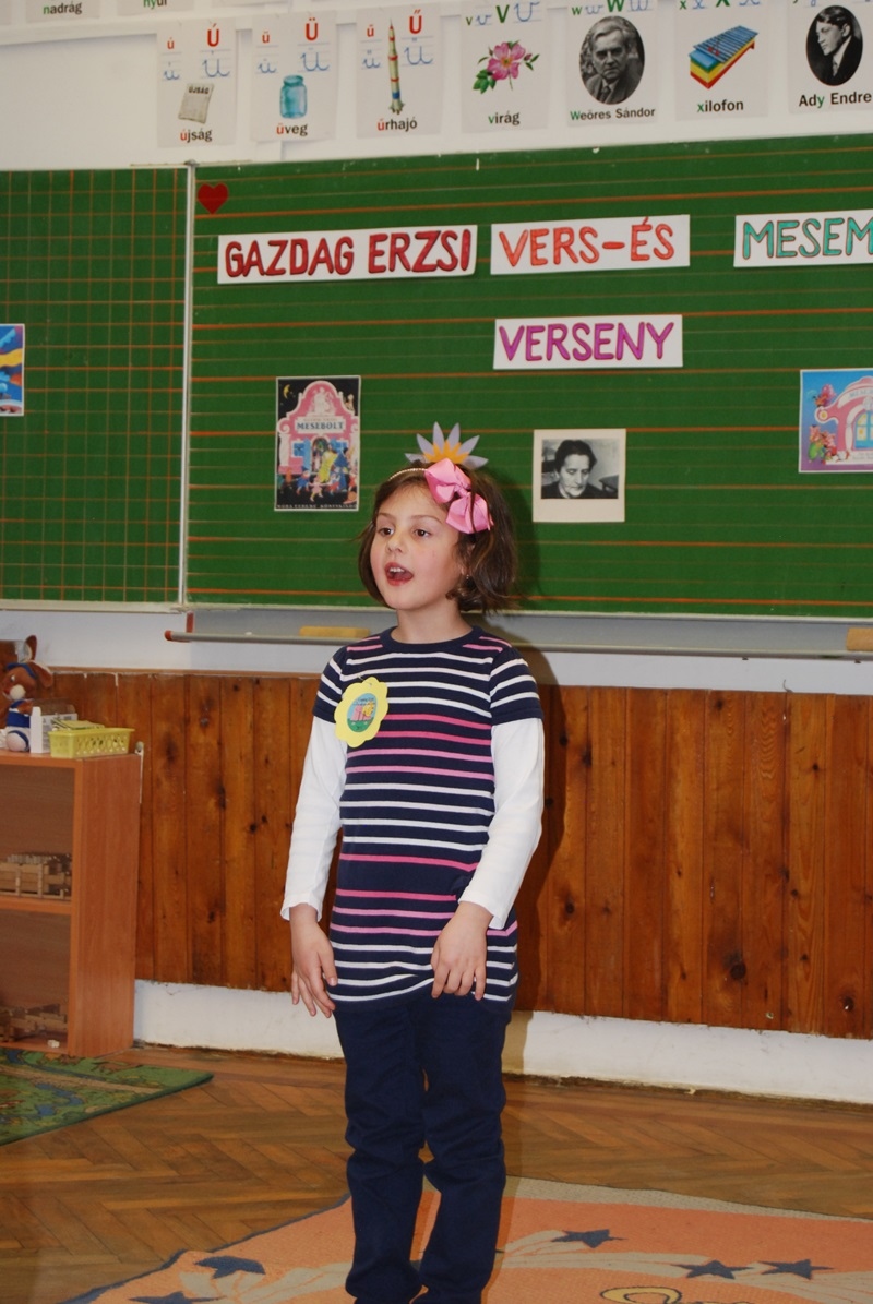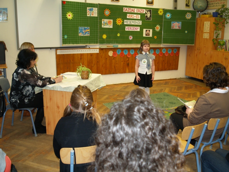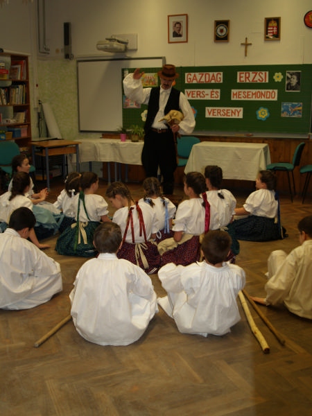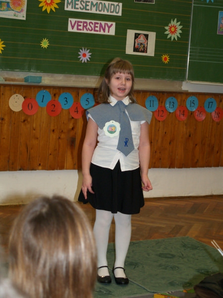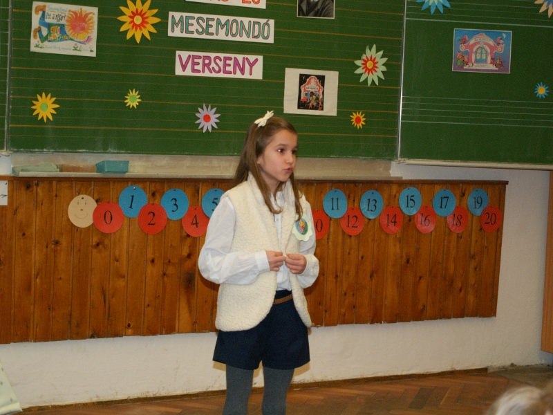 A versenyen három korcsoportban (óvodás, 1-2. osztályos, 3-4. osztályos) mutathatták be választott meséiket, verseiket a gyerekek. Idén legtöbben mesével érkeztek. A verseny végén tízóraival, kézműves foglalkozással várták a tanítók a gyerekeket, majd iskolánk egyik néptánc csoportja szórakoztatta őket. Ez alatt a zsűri meghozta döntését.