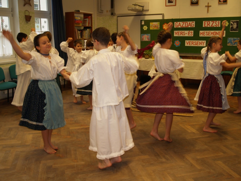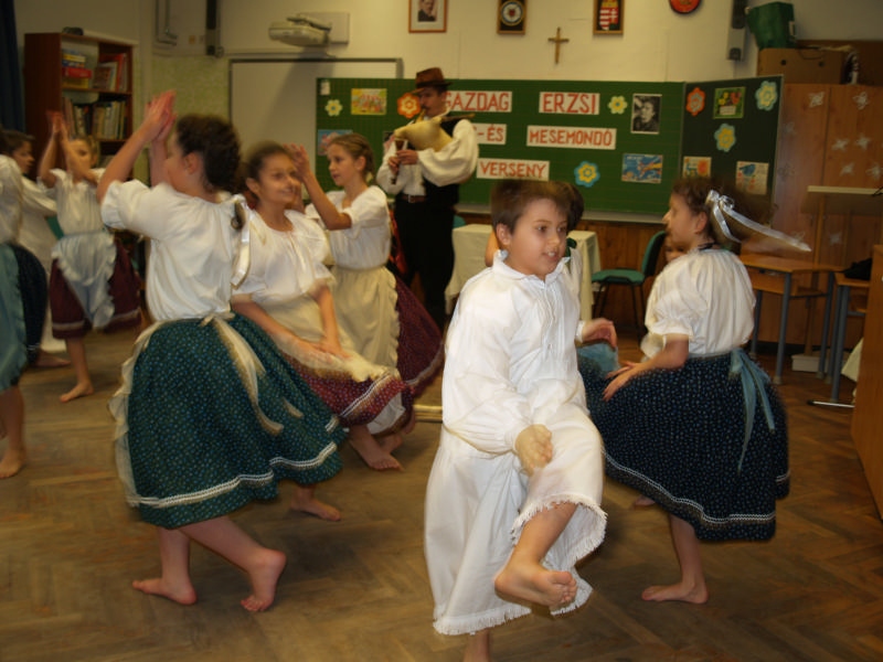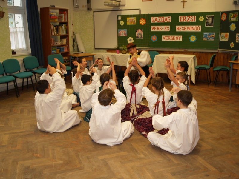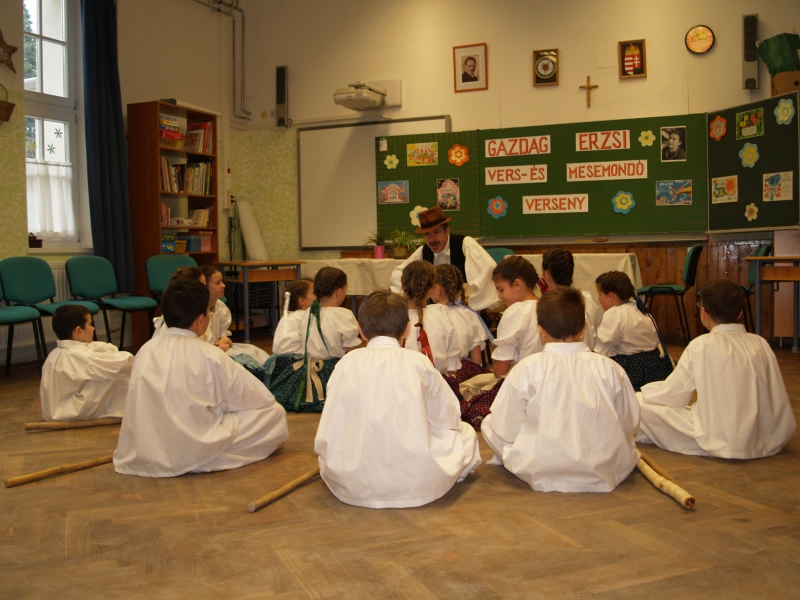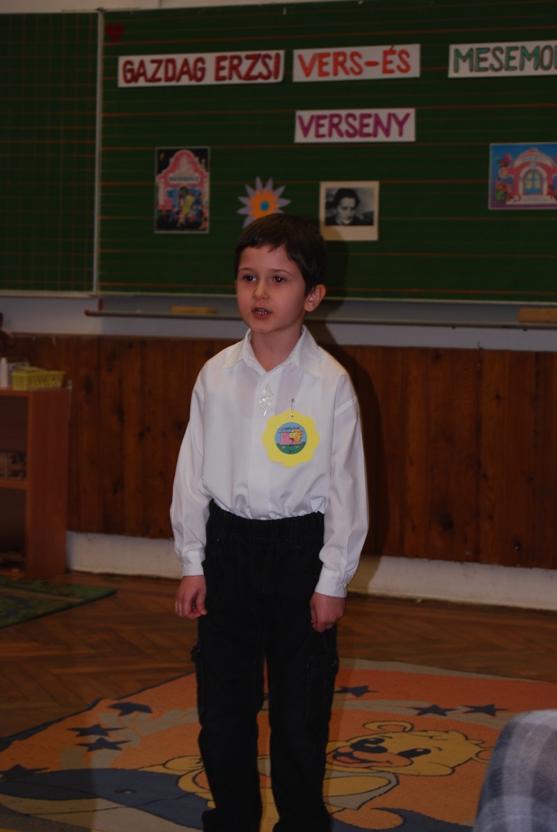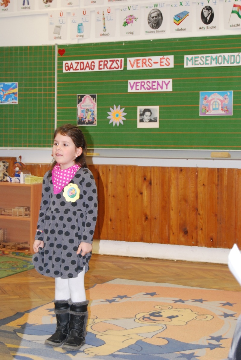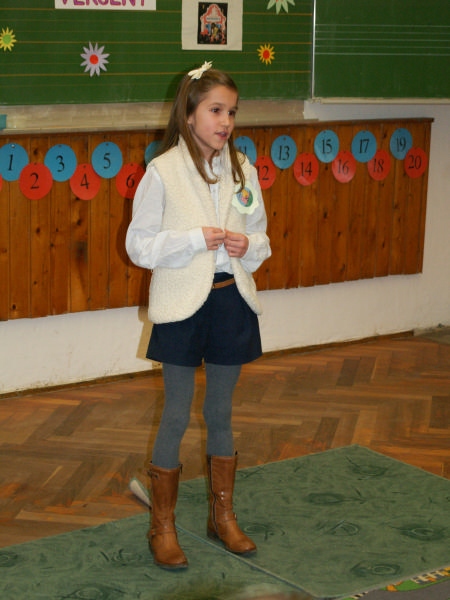 A versenyen három korcsoportban (óvodás, 1-2. osztályos, 3-4. osztályos) mutathatták be választott meséiket, verseiket a gyerekek. Idén legtöbben mesével érkeztek. A verseny végén tízóraival, kézműves foglalkozással várták a tanítók a gyerekeket, majd iskolánk egyik néptánc csoportja szórakoztatta őket. Ez alatt a zsűri meghozta döntését.