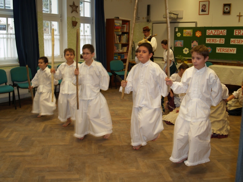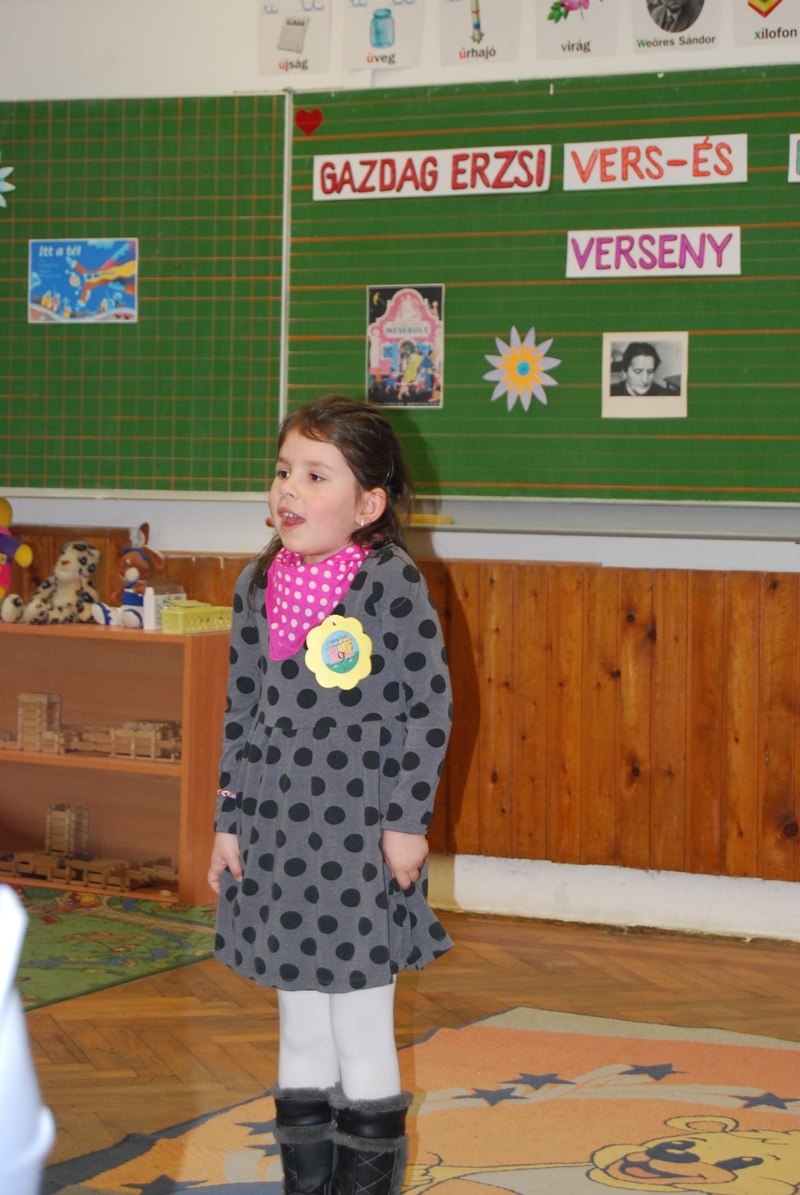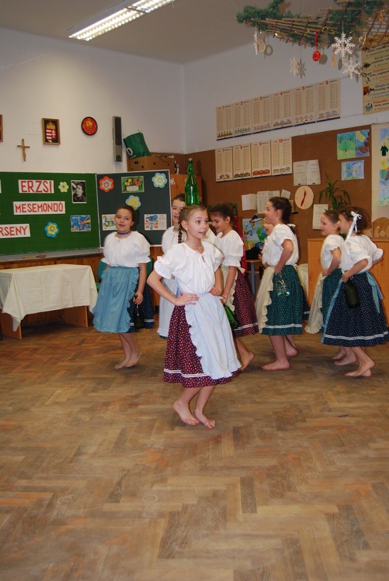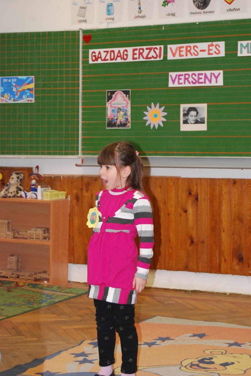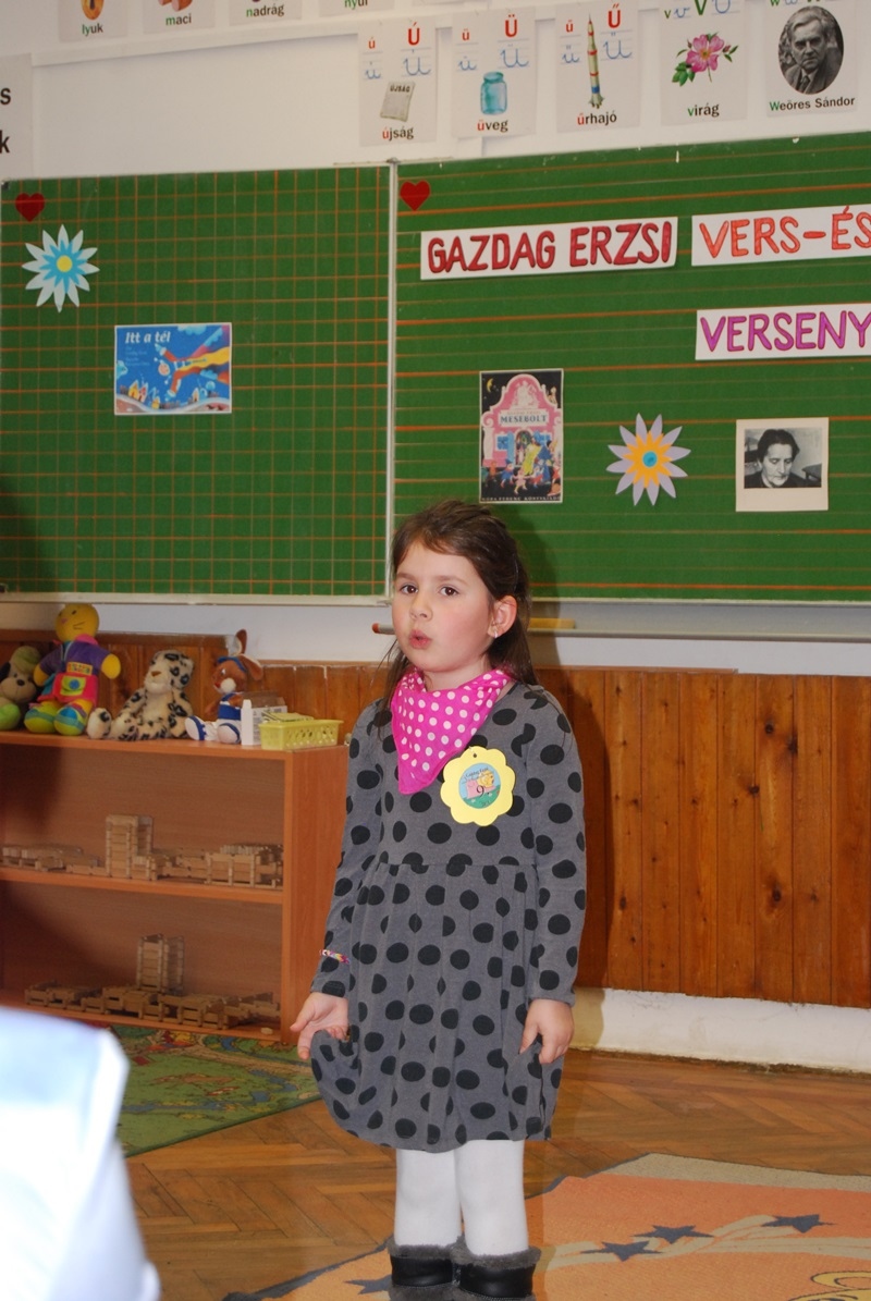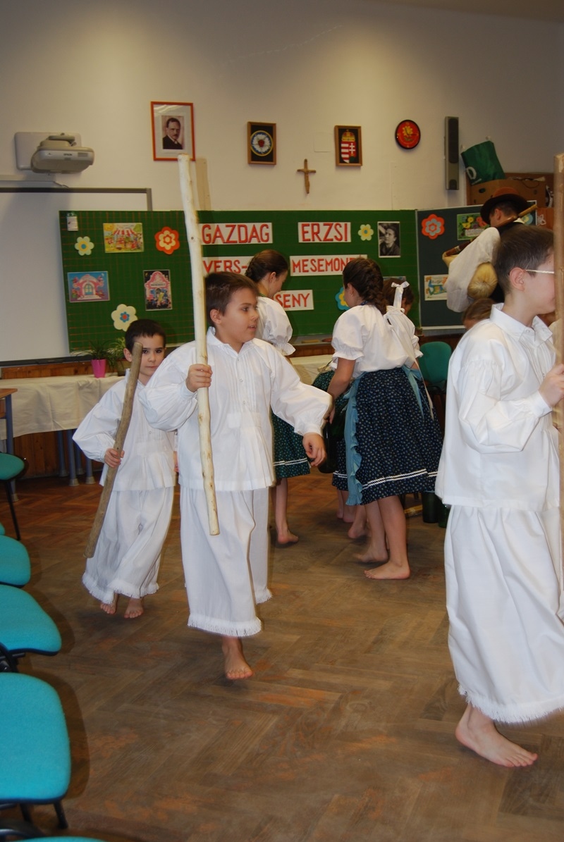 A versenyen három korcsoportban (óvodás, 1-2. osztályos, 3-4. osztályos) mutathatták be választott meséiket, verseiket a gyerekek. Idén legtöbben mesével érkeztek. A verseny végén tízóraival, kézműves foglalkozással várták a tanítók a gyerekeket, majd iskolánk egyik néptánc csoportja szórakoztatta őket. Ez alatt a zsűri meghozta döntését.