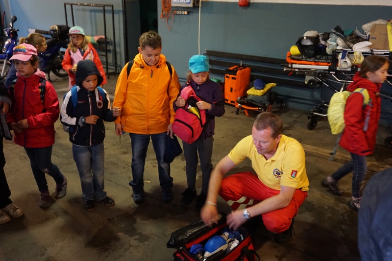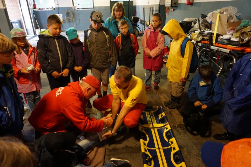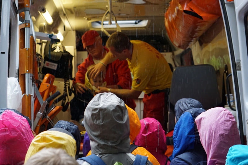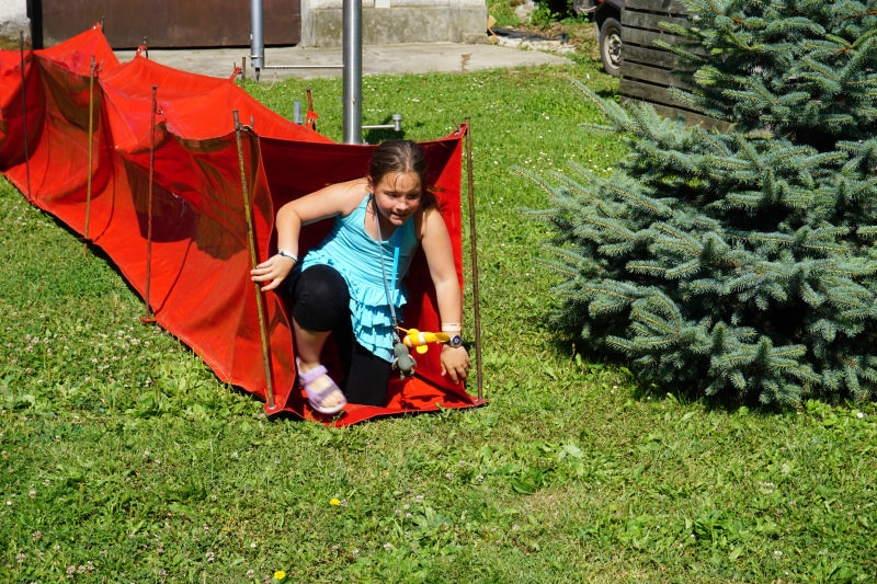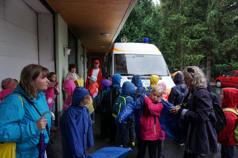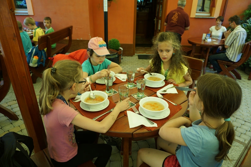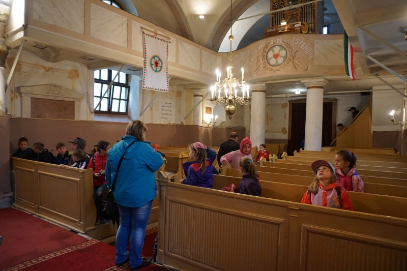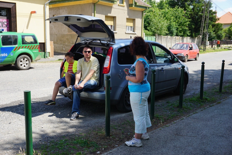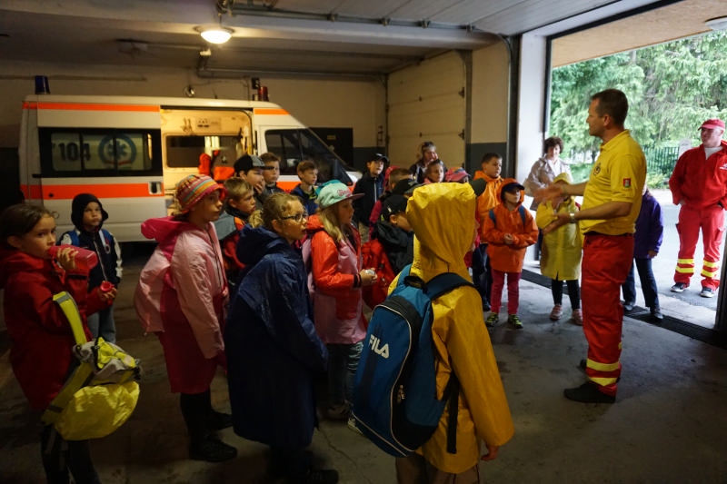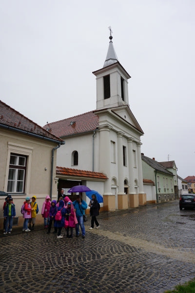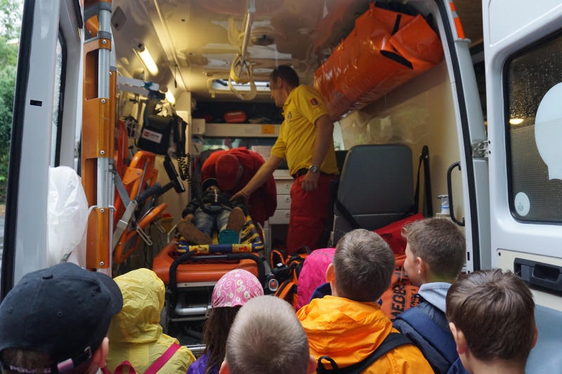 Esős napra ébredtünk, így nagy hőstettet hajtottunk végre, mikor elindultunk Sárvárra kirándulni - ezúttal vonattal. Elsőként a mentőállomást néztük meg. Ott nagyon látványos bemutatóval fogadtak bennünket. Patrik, alias Boldizsár hadirokkantként került a mentőkocsiba, de természetesen mindenki kipróbálhatta, milyen a mentőben ülni sofőrként, vagy betegként. Ezután meglátogattuk az evangélikus templomot. Ázott verébseregként érkeztünk meg, így elsőként megszárítkoztunk az egyházközség gyülekezeti termében, ahol lelkész úr érdekes előadását hallgathattuk meg. Ezt követően az evangélikus templom történetét is megismerhettük. Túránk során még benéztük a várudvarba, majd a vasútállomás felé vettük az irányt. Kicsit korábban mint terveztük, de a szülők segítségével hamar visszaértünk az iskolába, ahol még játszhattak a táborozók.
