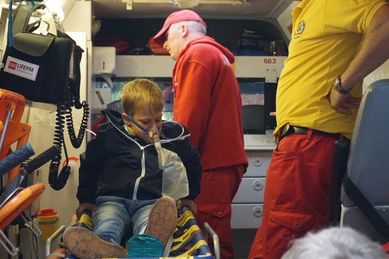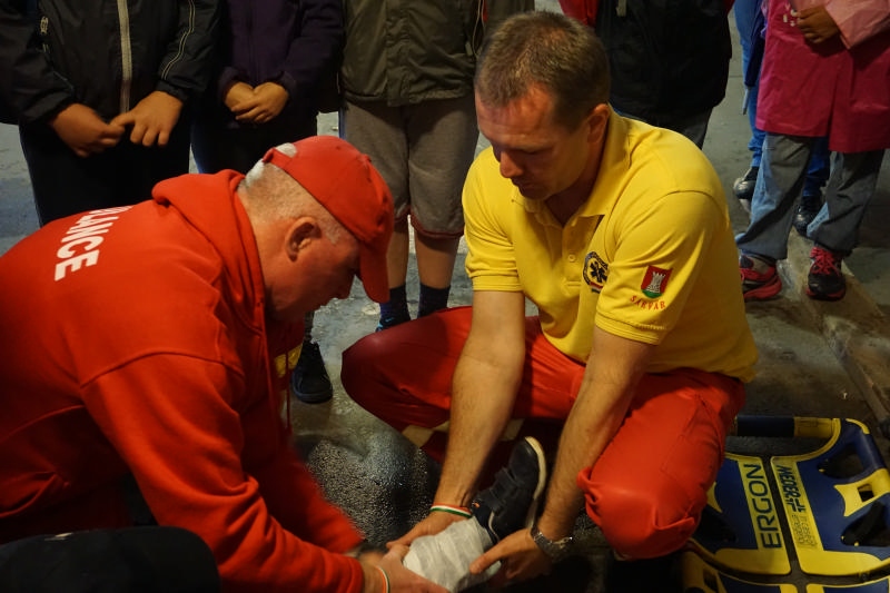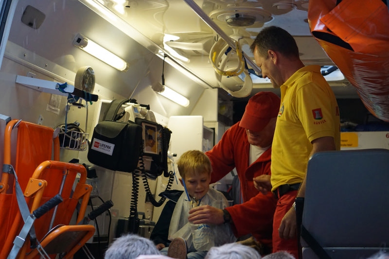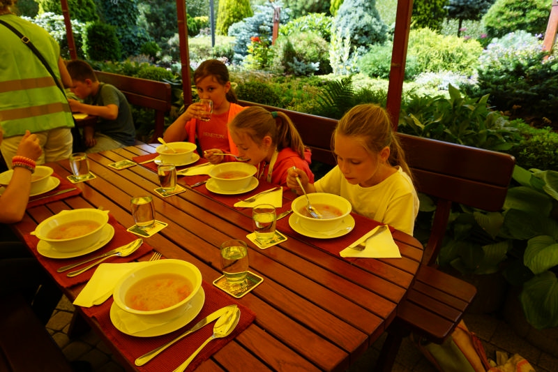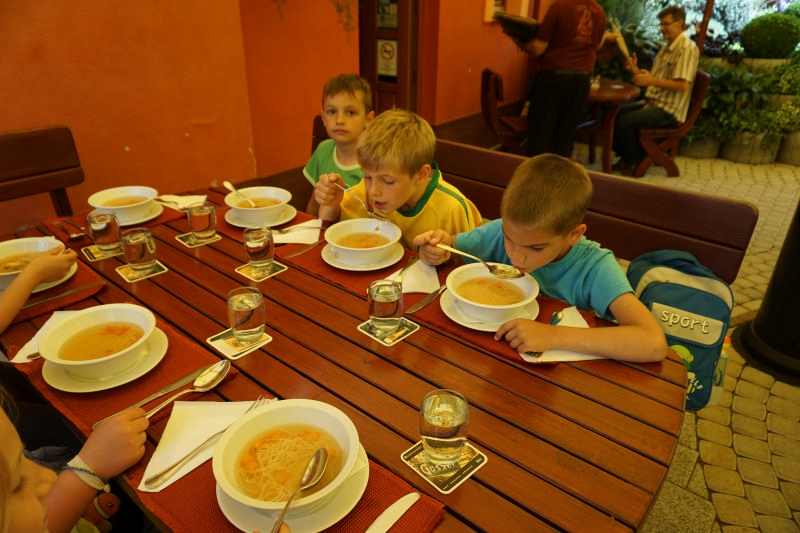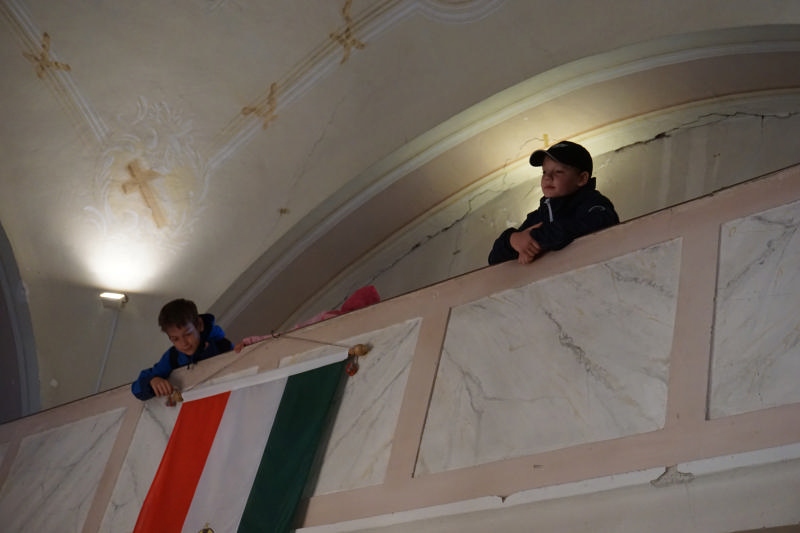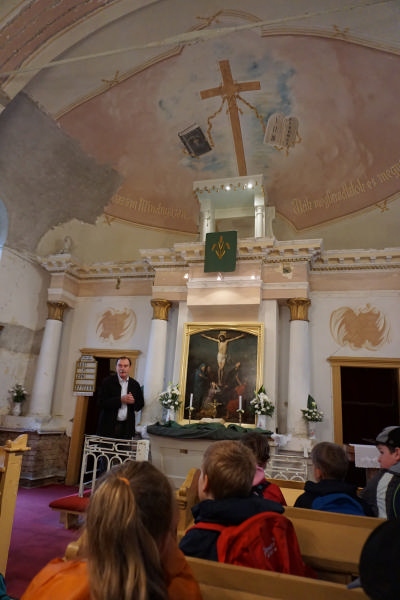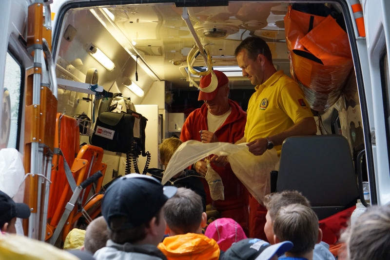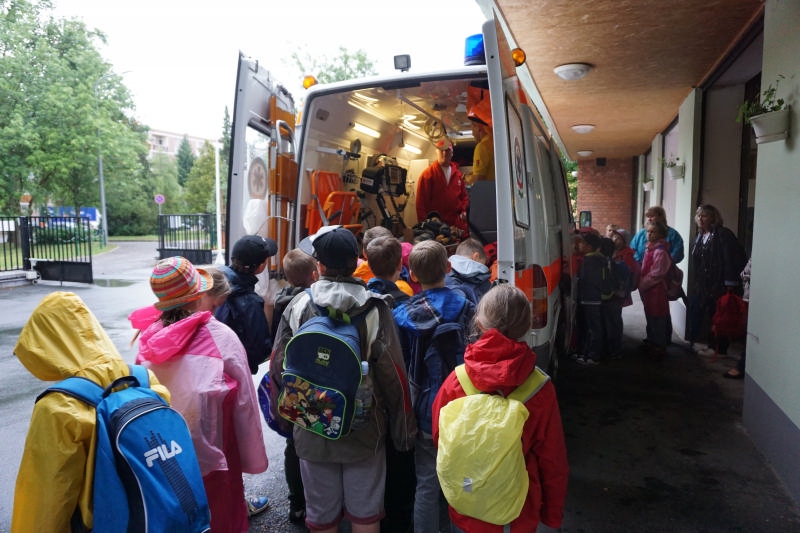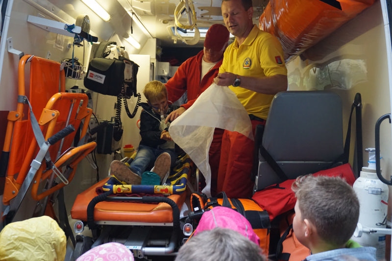 Esős napra ébredtünk, így nagy hőstettet hajtottunk végre, mikor elindultunk Sárvárra kirándulni - ezúttal vonattal. Elsőként a mentőállomást néztük meg. Ott nagyon látványos bemutatóval fogadtak bennünket. Patrik, alias Boldizsár hadirokkantként került a mentőkocsiba, de természetesen mindenki kipróbálhatta, milyen a mentőben ülni sofőrként, vagy betegként. Ezután meglátogattuk az evangélikus templomot. Ázott verébseregként érkeztünk meg, így elsőként megszárítkoztunk az egyházközség gyülekezeti termében, ahol lelkész úr érdekes előadását hallgathattuk meg. Ezt követően az evangélikus templom történetét is megismerhettük. Túránk során még benéztük a várudvarba, majd a vasútállomás felé vettük az irányt. Kicsit korábban mint terveztük, de a szülők segítségével hamar visszaértünk az iskolába, ahol még játszhattak a táborozók.
