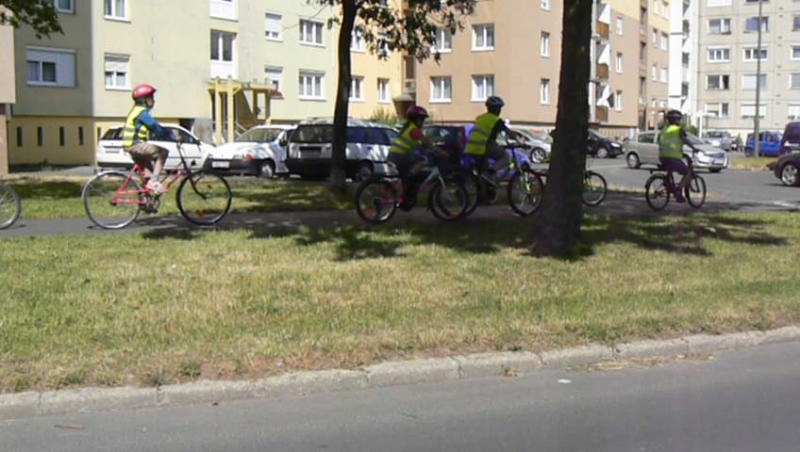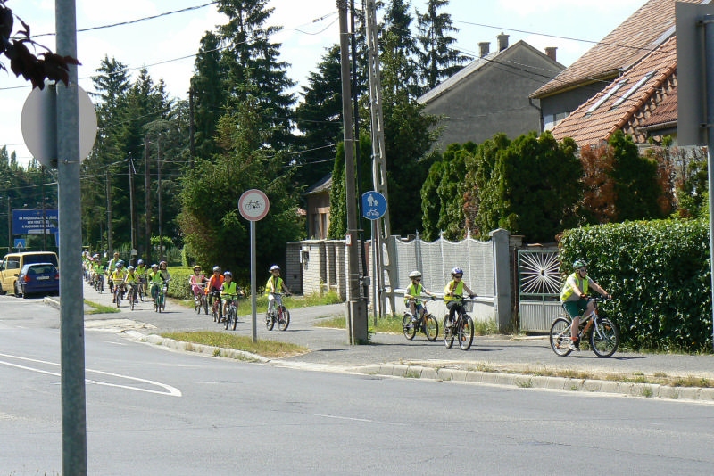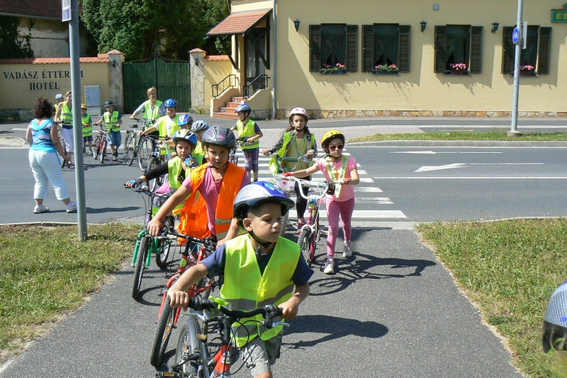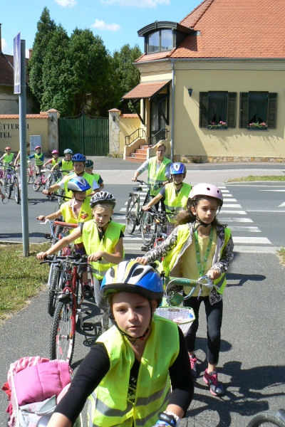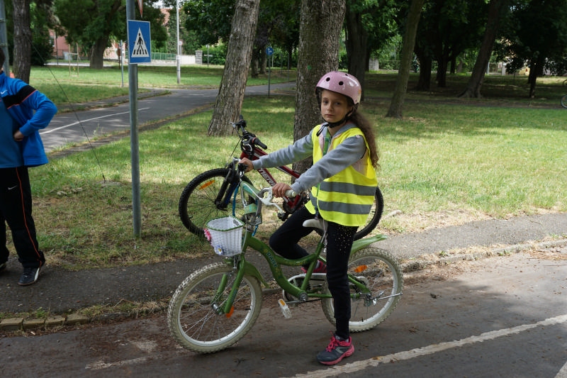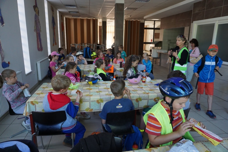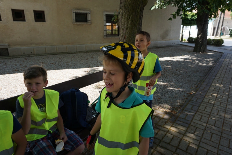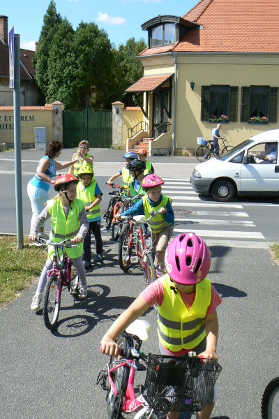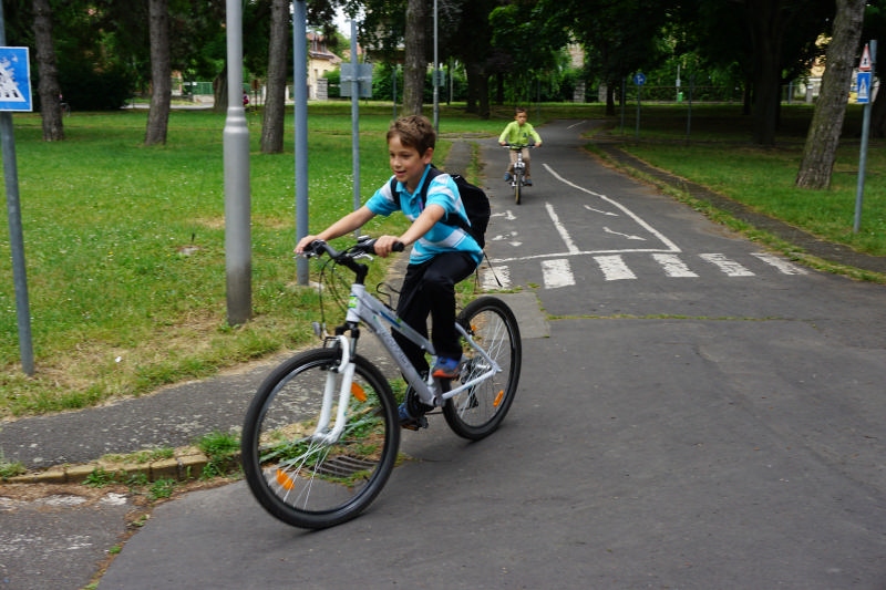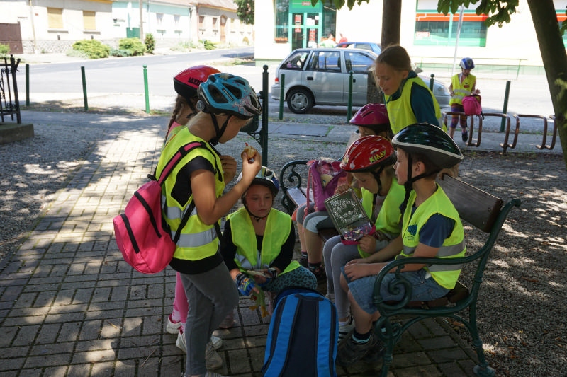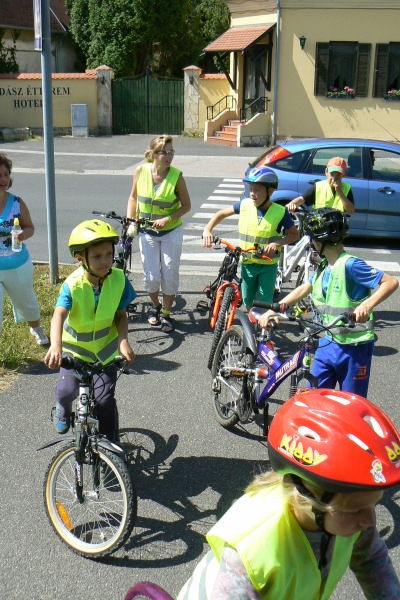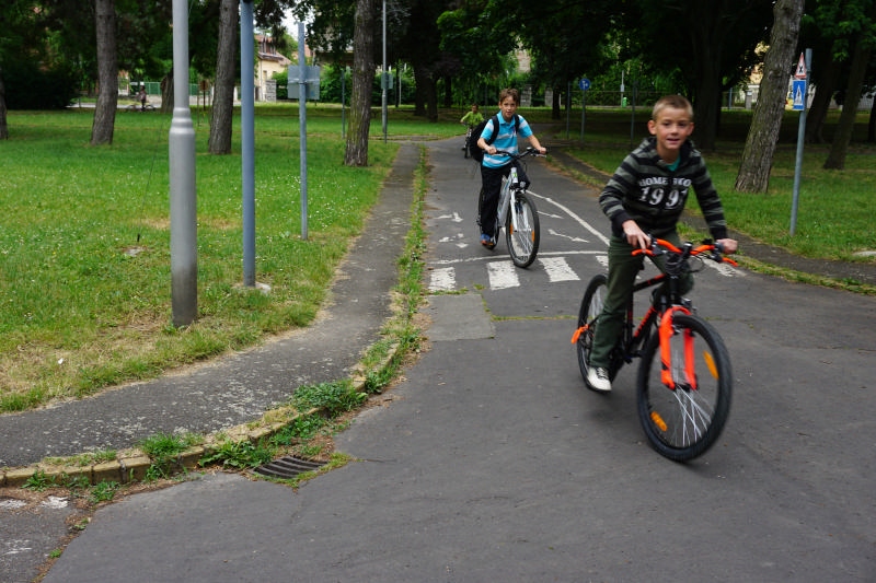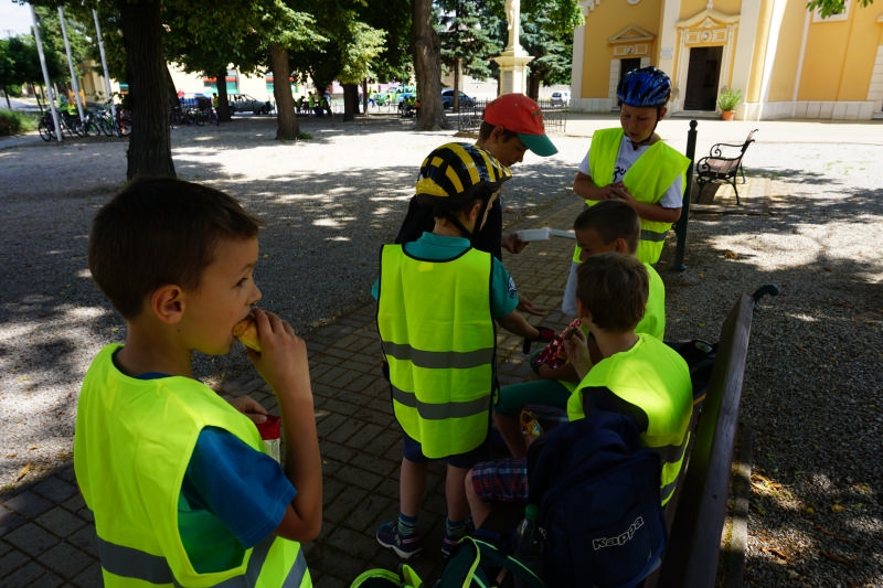 A sárvári gyalogtúra után ezen a napon ismét kerékpárral vettük nyakunkba a várost. Elsőként az Erdészeti Központba látogattunk el (Olad-körgyűrű irányba), majd visszakerekeztünk a belvárosba egy finom palacsinta lakomára. Innen moziba mentünk, ahol a Végre otthon animációs filmnek köszönhetően megtudhattuk, hogy az autók szörppel táplálva repülni is képesek :-) Mozi után a KRESZ park felé vettük az irányt. Itt gyakorolhatták a gyerekek a közúti közlekedést. A szabálytalankodókat pedig a rendőrök okították a helyes közlekedésre.