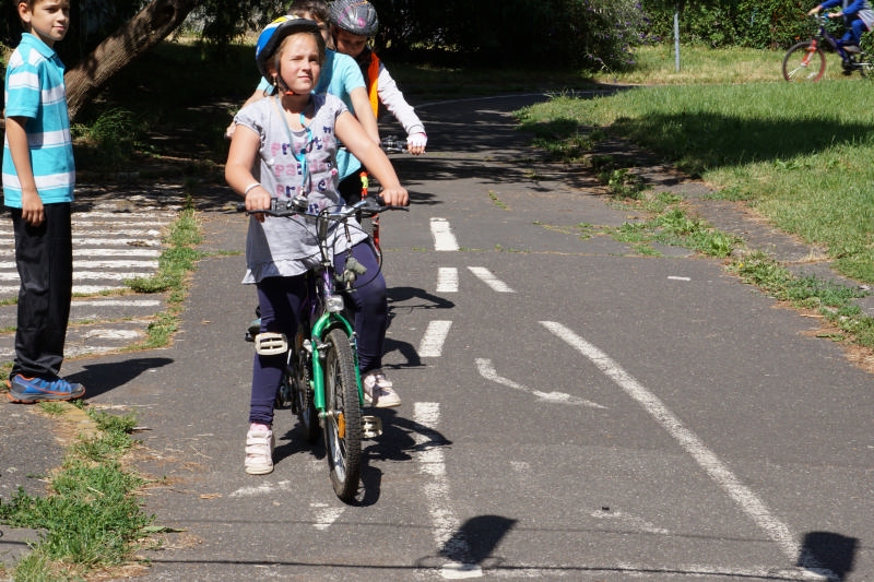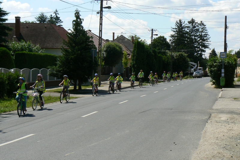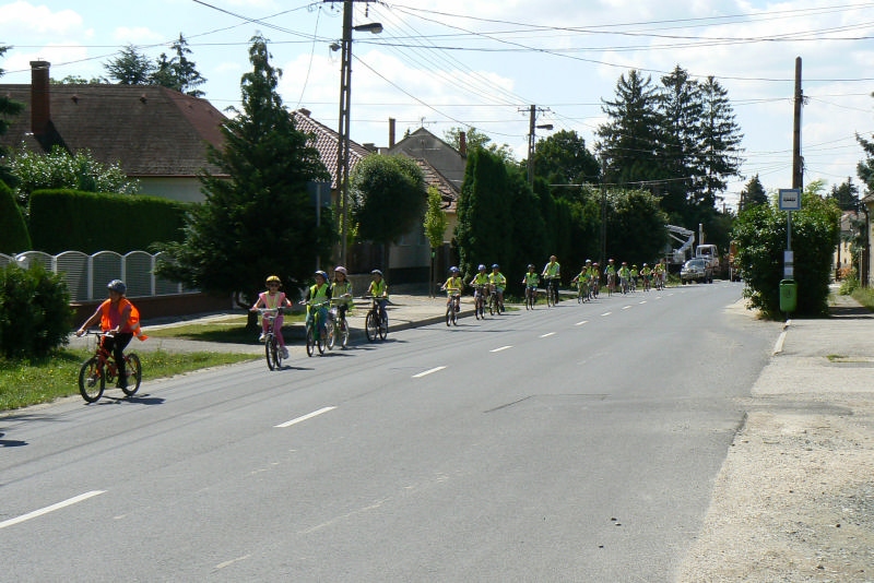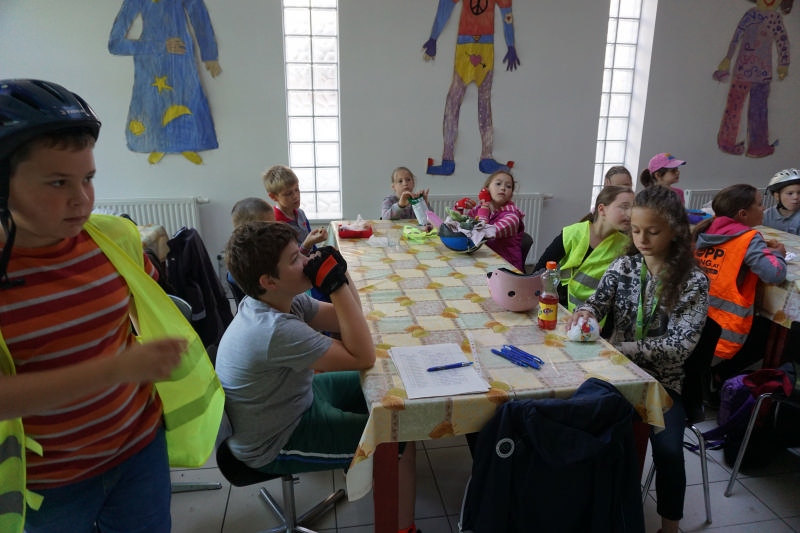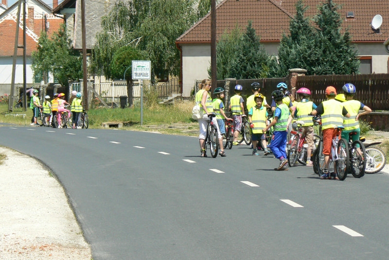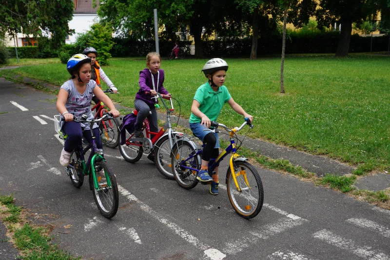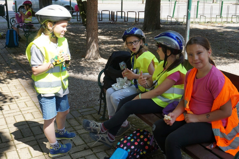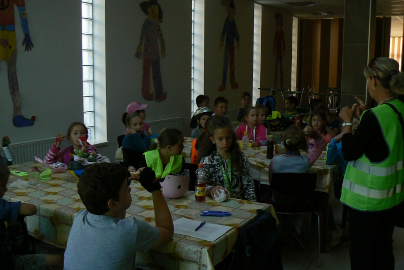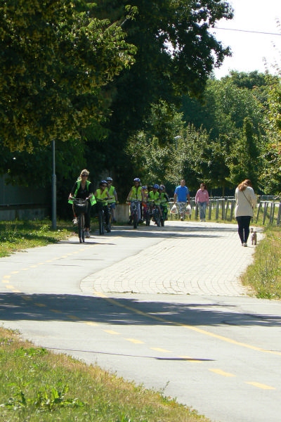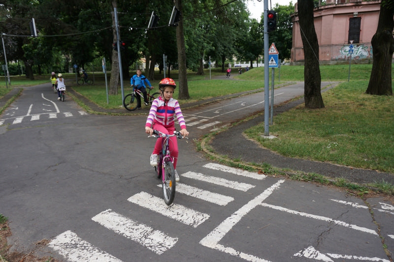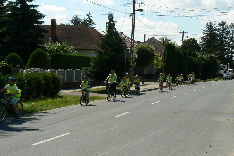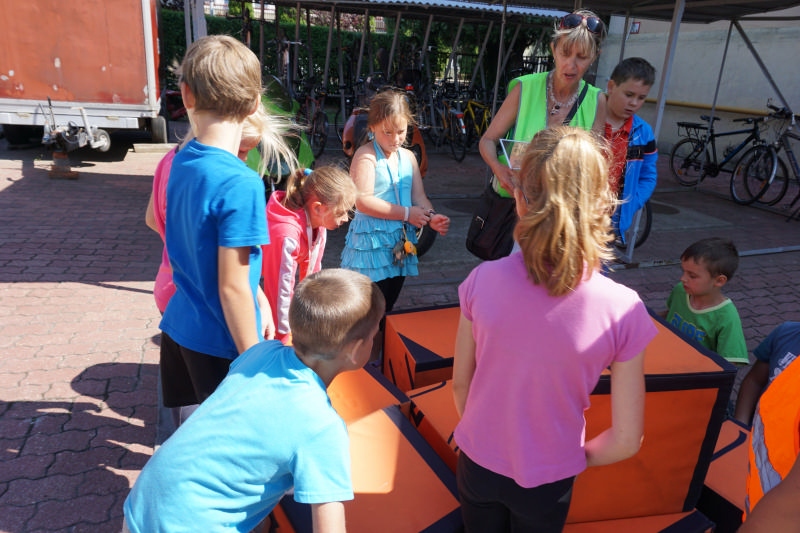 A sárvári gyalogtúra után ezen a napon ismét kerékpárral vettük nyakunkba a várost. Elsőként az Erdészeti Központba látogattunk el (Olad-körgyűrű irányba), majd visszakerekeztünk a belvárosba egy finom palacsinta lakomára. Innen moziba mentünk, ahol a Végre otthon animációs filmnek köszönhetően megtudhattuk, hogy az autók szörppel táplálva repülni is képesek :-) Mozi után a KRESZ park felé vettük az irányt. Itt gyakorolhatták a gyerekek a közúti közlekedést. A szabálytalankodókat pedig a rendőrök okították a helyes közlekedésre.