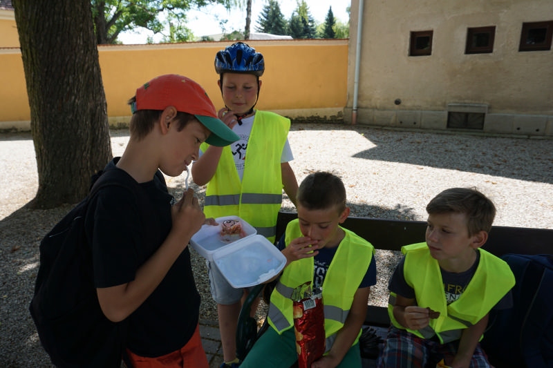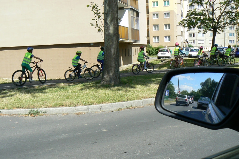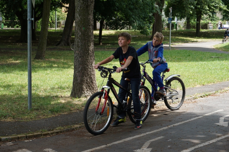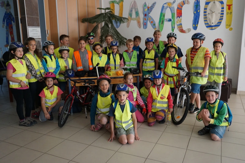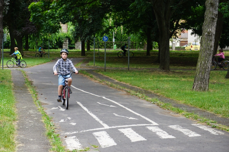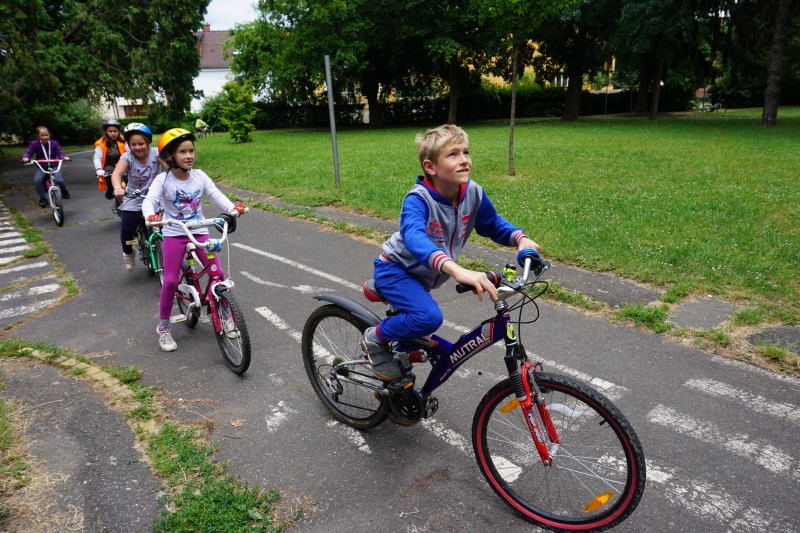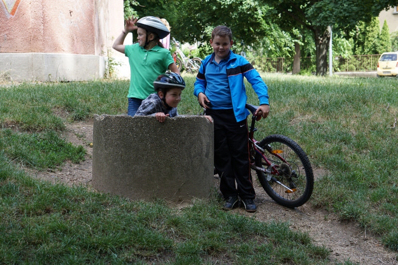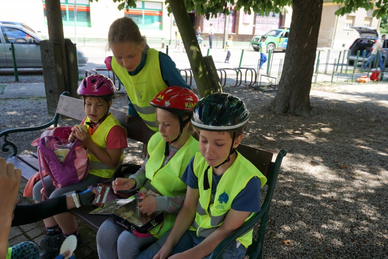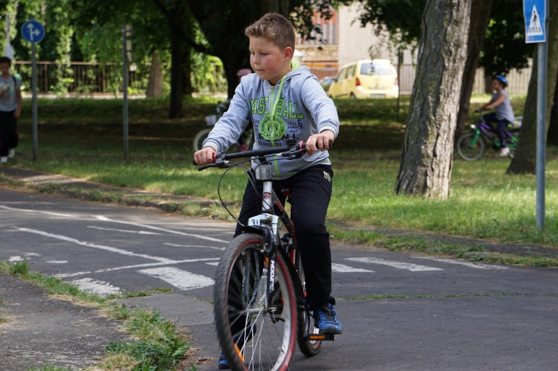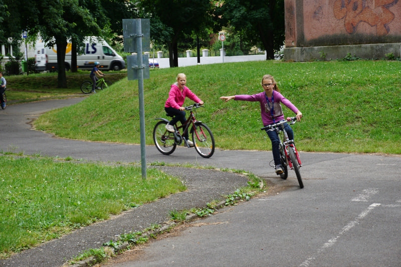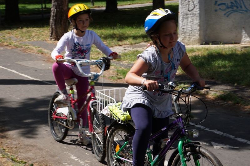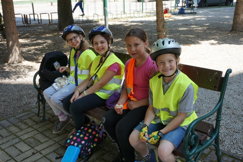 A sárvári gyalogtúra után ezen a napon ismét kerékpárral vettük nyakunkba a várost. Elsőként az Erdészeti Központba látogattunk el (Olad-körgyűrű irányba), majd visszakerekeztünk a belvárosba egy finom palacsinta lakomára. Innen moziba mentünk, ahol a Végre otthon animációs filmnek köszönhetően megtudhattuk, hogy az autók szörppel táplálva repülni is képesek :-) Mozi után a KRESZ park felé vettük az irányt. Itt gyakorolhatták a gyerekek a közúti közlekedést. A szabálytalankodókat pedig a rendőrök okították a helyes közlekedésre.
