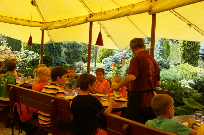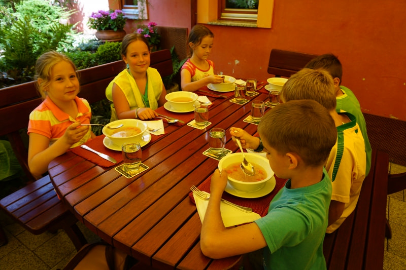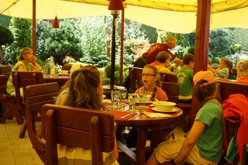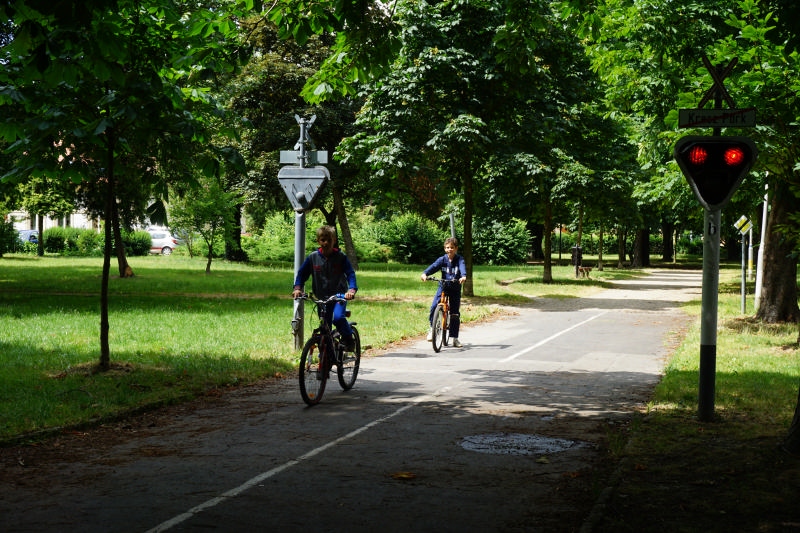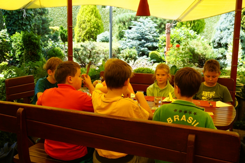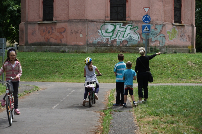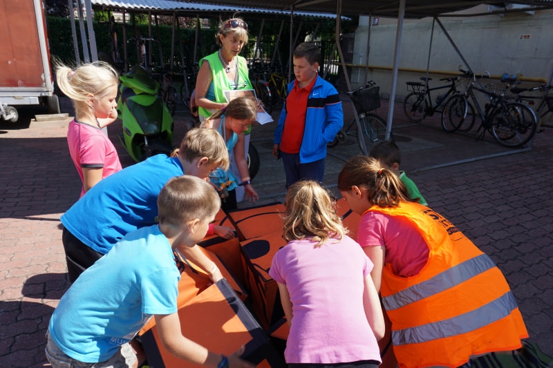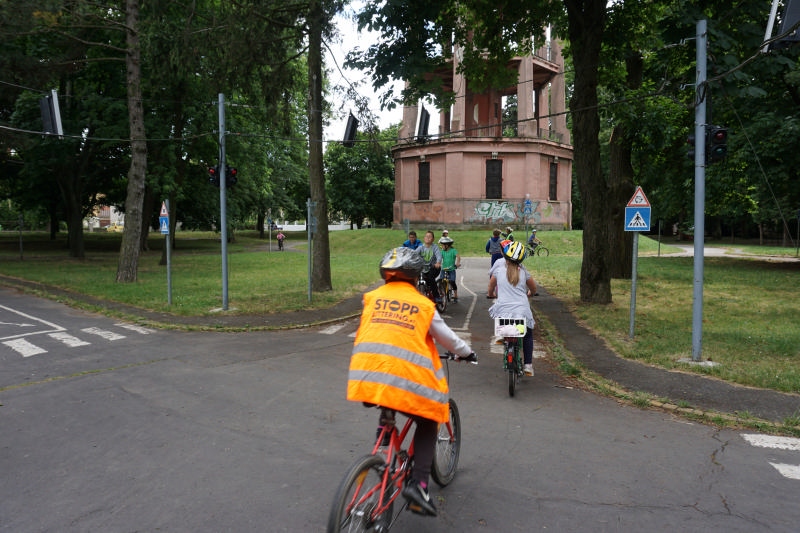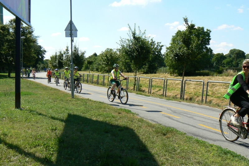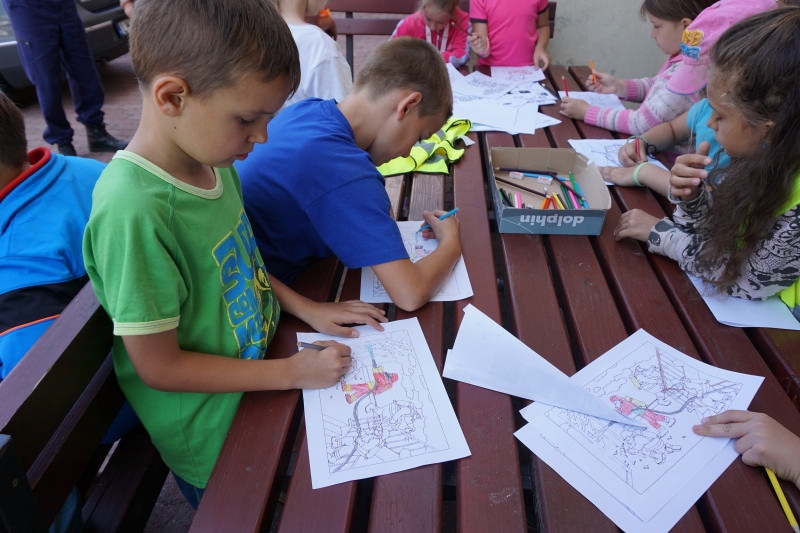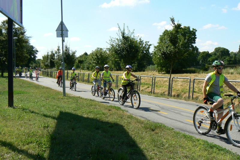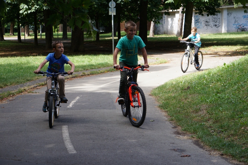 A sárvári gyalogtúra után ezen a napon ismét kerékpárral vettük nyakunkba a várost. Elsőként az Erdészeti Központba látogattunk el (Olad-körgyűrű irányba), majd visszakerekeztünk a belvárosba egy finom palacsinta lakomára. Innen moziba mentünk, ahol a Végre otthon animációs filmnek köszönhetően megtudhattuk, hogy az autók szörppel táplálva repülni is képesek :-) Mozi után a KRESZ park felé vettük az irányt. Itt gyakorolhatták a gyerekek a közúti közlekedést. A szabálytalankodókat pedig a rendőrök okították a helyes közlekedésre.