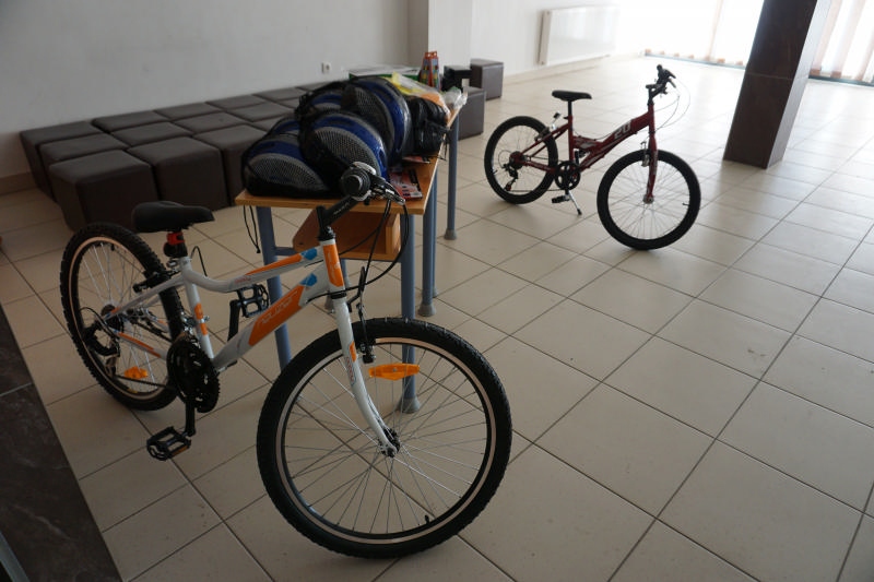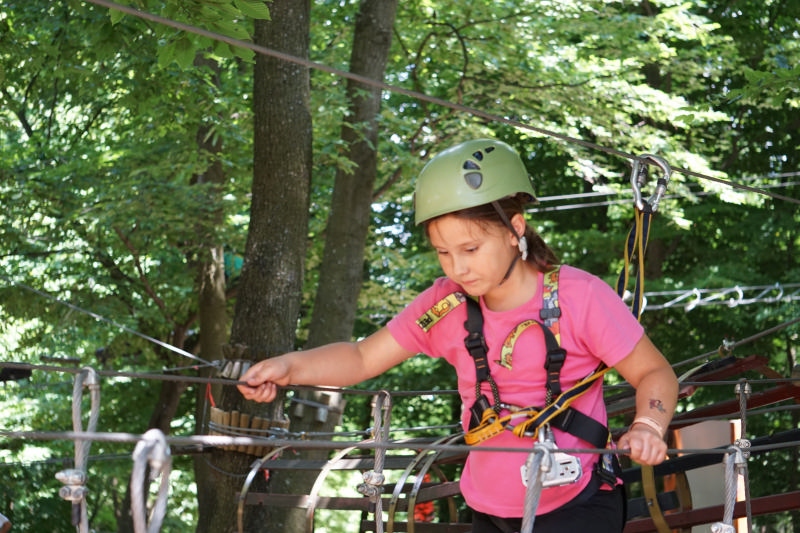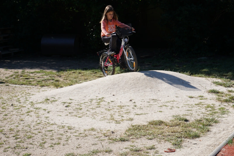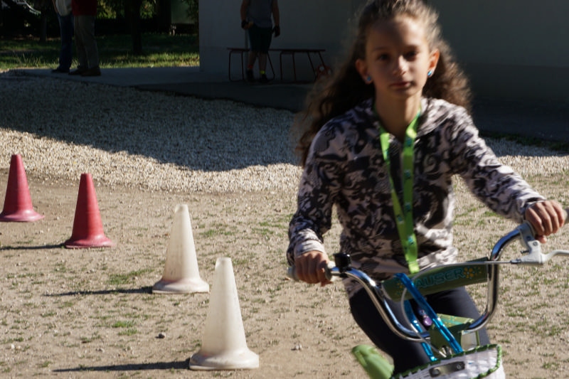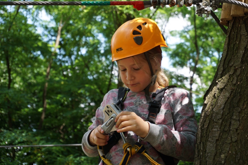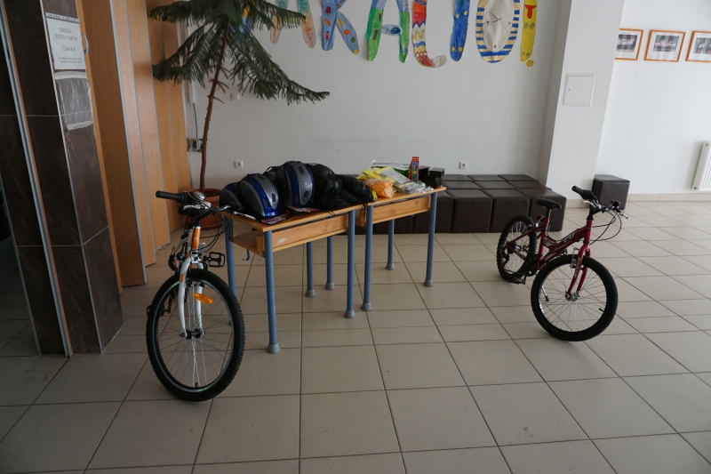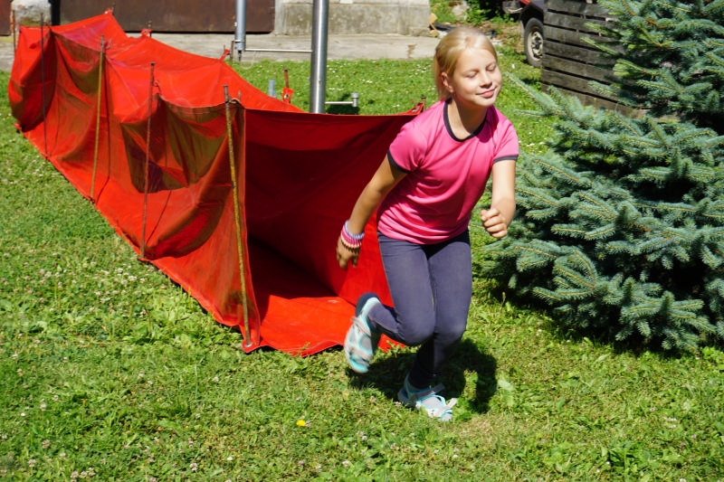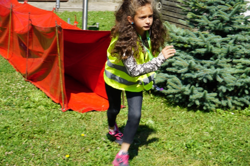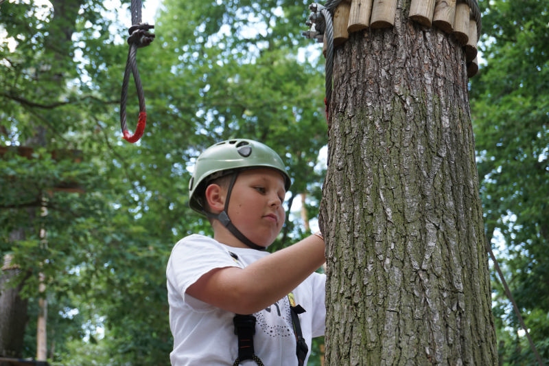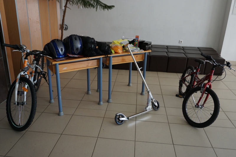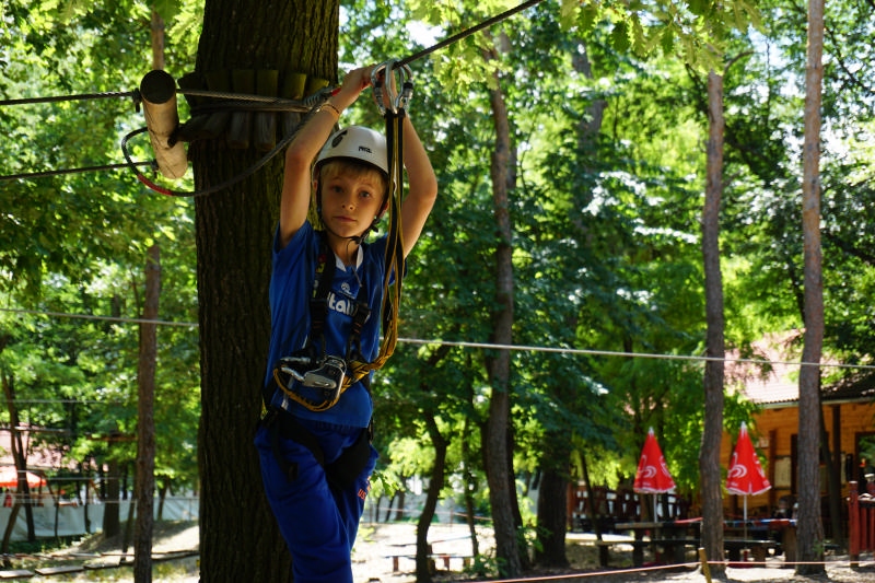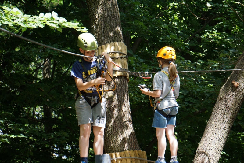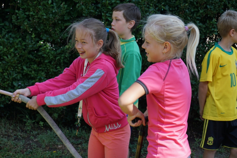 A tábor első napján ismerkedtünk egymással, a KRESZ szabályokkal, majd kerékpárra pattantunk és bejártuk a környéket. Nem volt zökkenőmentes az első túra: a bicikliknek hála felfedezhettük, hogy kitűnő kerékpárjavító-mester van a csapatunkban. Sorban potyogtak le a láncok, melyeket Heitler Dávid szerelőmester helyezett vissza szakszerűen a biciklikre. Délután még a Kalandvárosban vártak ránk nagy kalandok, ki várkapitányként, ki hegymászóként állta meg a helyét.