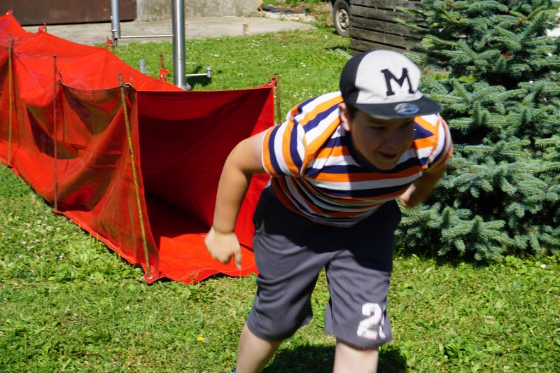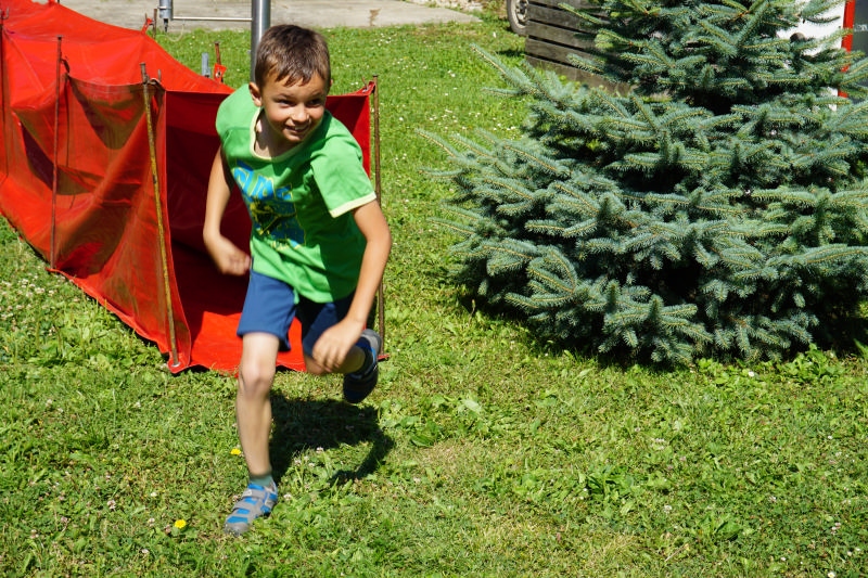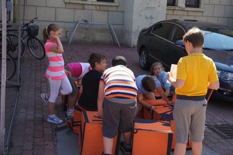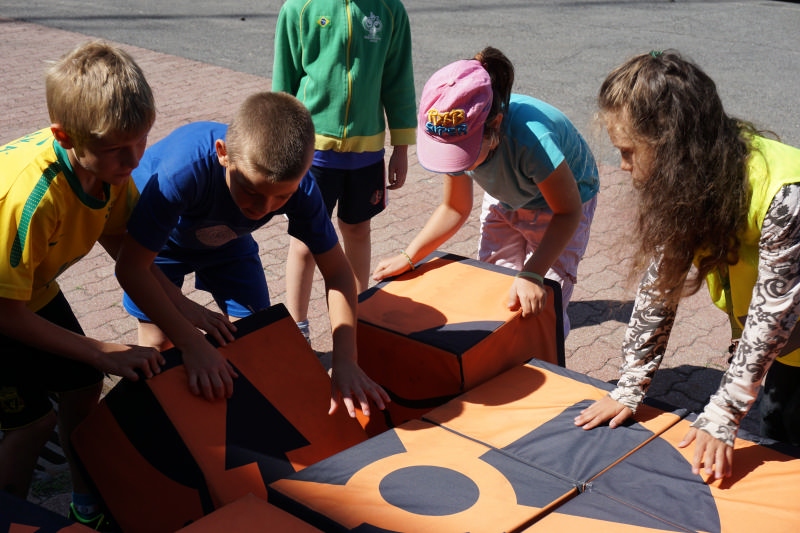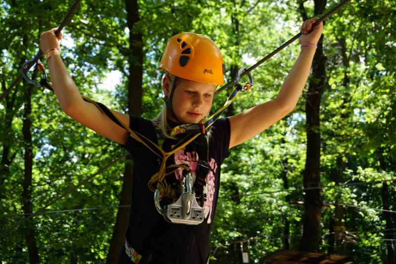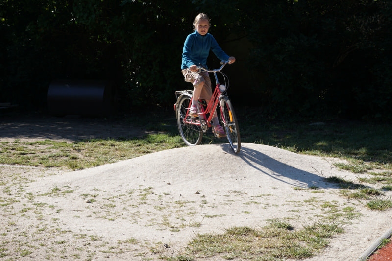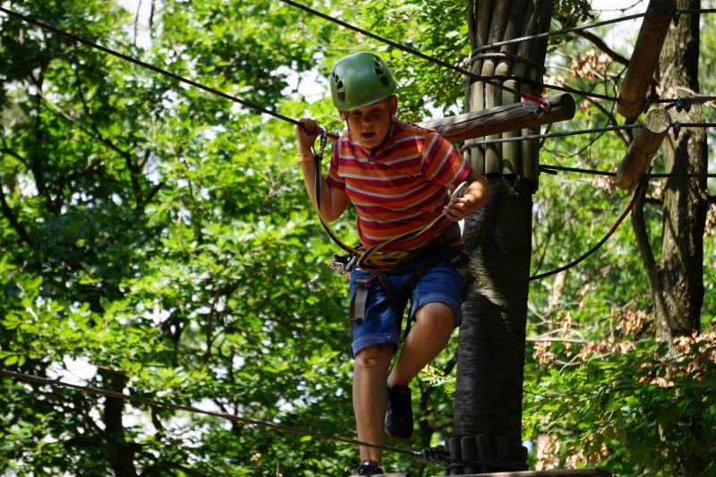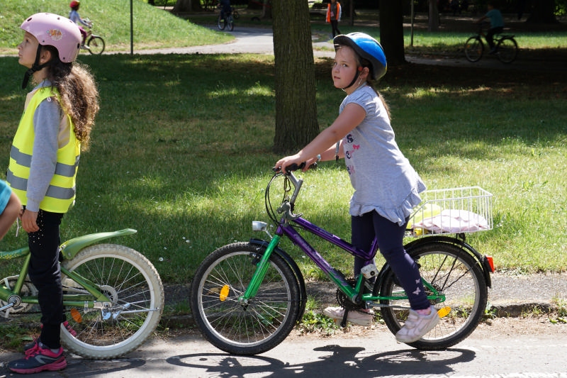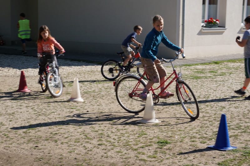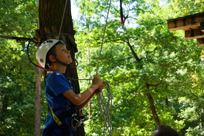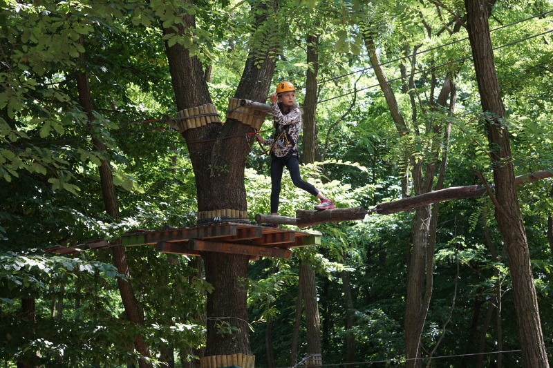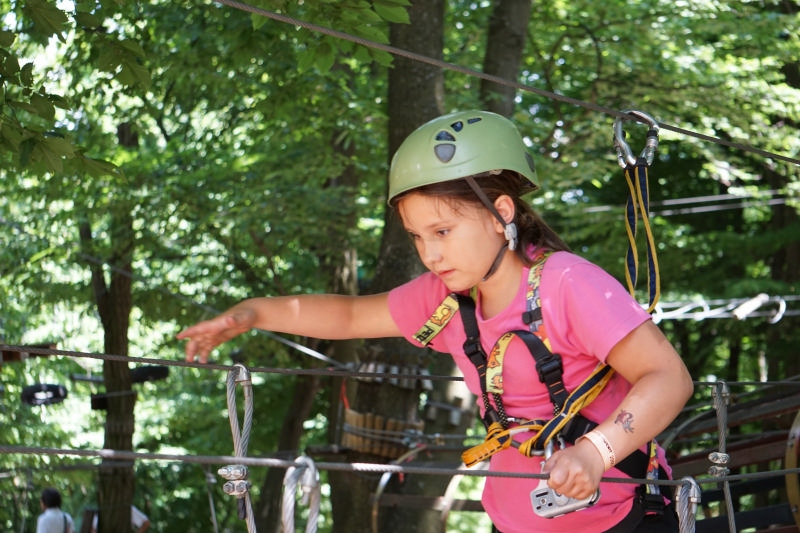 A tábor első napján ismerkedtünk egymással, a KRESZ szabályokkal, majd kerékpárra pattantunk és bejártuk a környéket. Nem volt zökkenőmentes az első túra: a bicikliknek hála felfedezhettük, hogy kitűnő kerékpárjavító-mester van a csapatunkban. Sorban potyogtak le a láncok, melyeket Heitler Dávid szerelőmester helyezett vissza szakszerűen a biciklikre. Délután még a Kalandvárosban vártak ránk nagy kalandok, ki várkapitányként, ki hegymászóként állta meg a helyét.