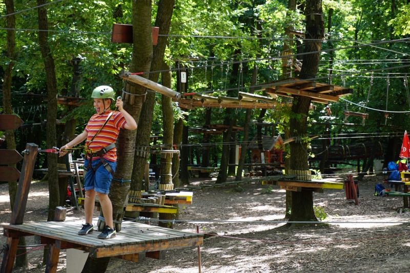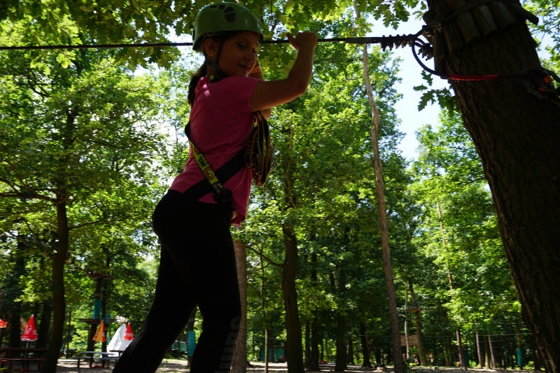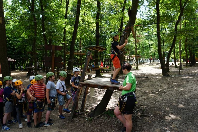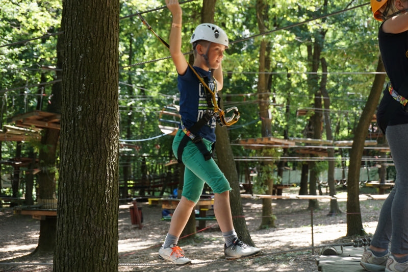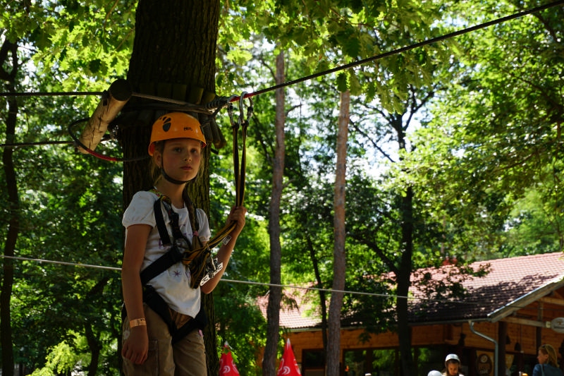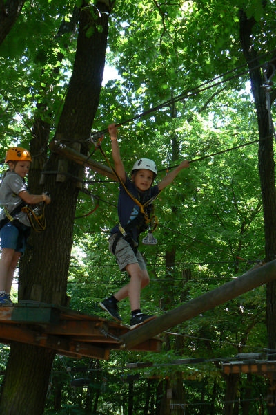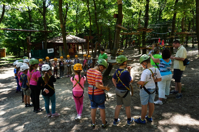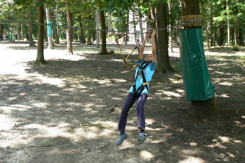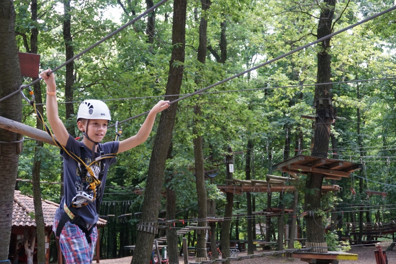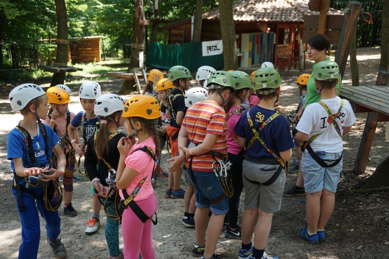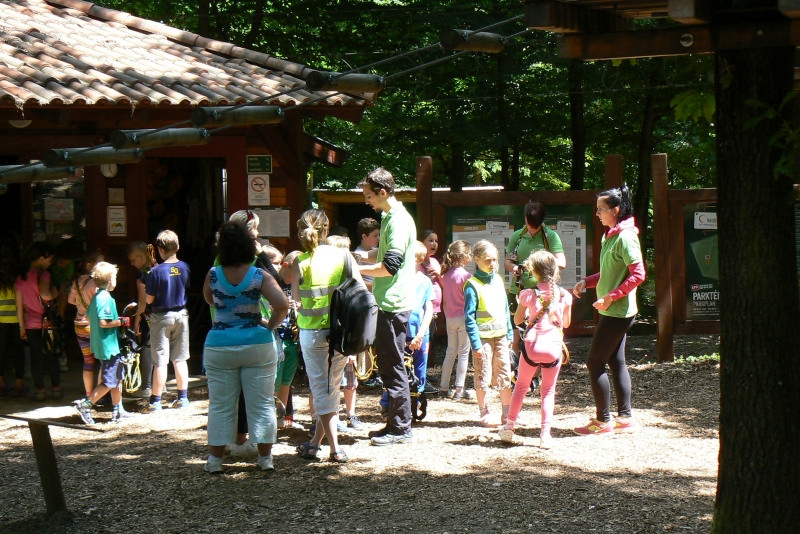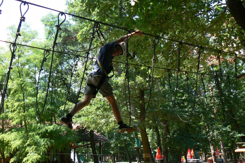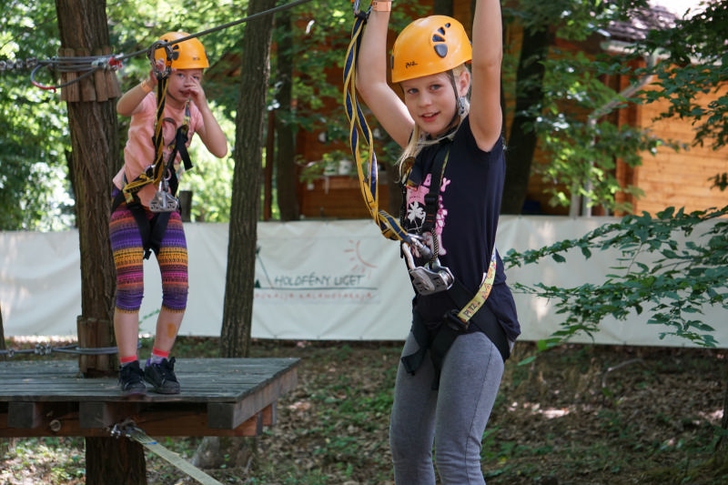 Hosszú túrára indult a kreszes csapat csütörtökön. A reggeli bemelegítő körök után a Holdfényliget felé vettük az irányt. Első körben azonban csak az utca végéig jutottunk, ott kis technikai hiba akadt, így vissza kellett fordulnunk. A suliban Béla bácsi gyorsan orvosolta a bűnös biciklik problémáit, hogy minél előbb útnak indulhassunk. A Gyöngyösfaluba vezető úton három szülő kísért minket, közülük ketten autóval, ha probléma adódna gyorsan cselekedhessünk. Erre azonban nem volt szükség, de azért nagy könnyebbség volt, hogy a csomagjaink a kocsikban utazhattak. A Holdfényligetbe érve a gyerekek izgatottan várták, hogy kipróbálhassák a kötélpályát. Rövid gyorstalpaló és egy pizza után már Maugliként csüngtek a köteleken. Hősiesen küzdötték végig magukat az akadályokon.