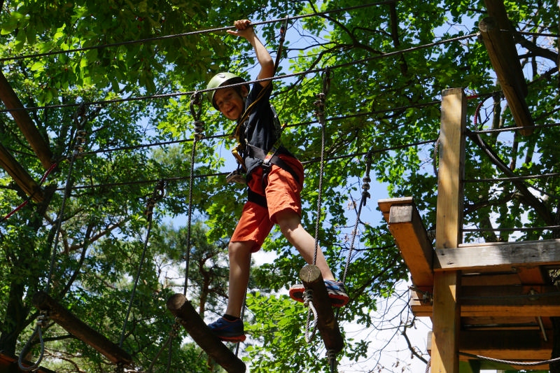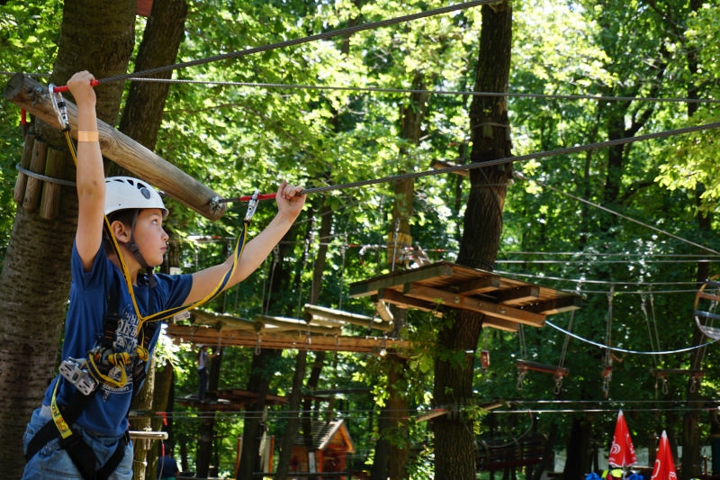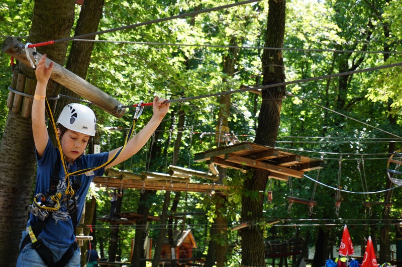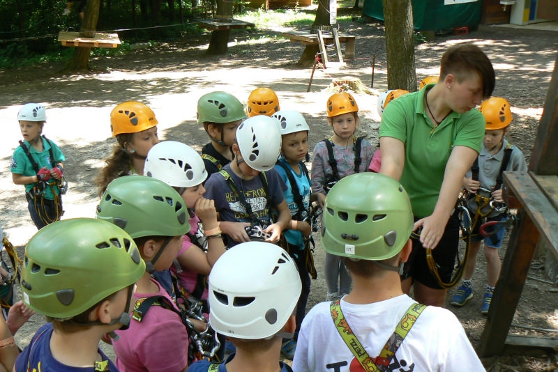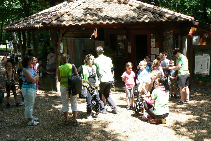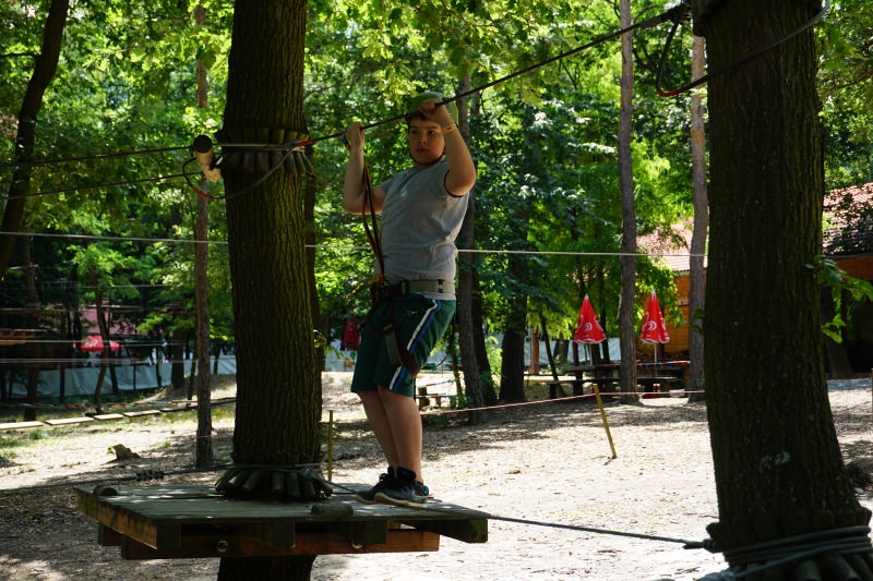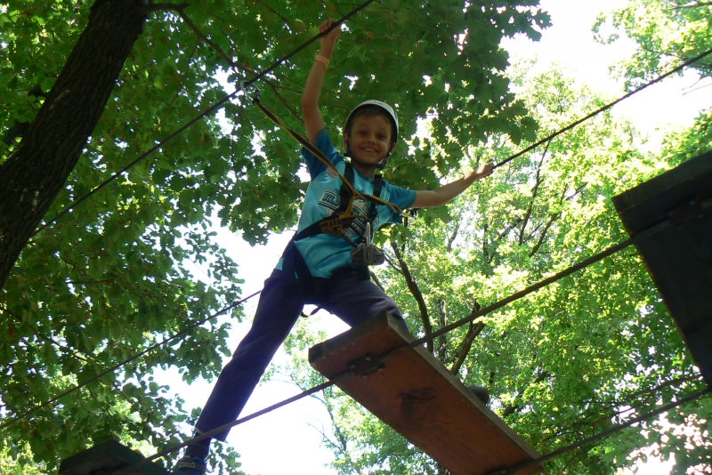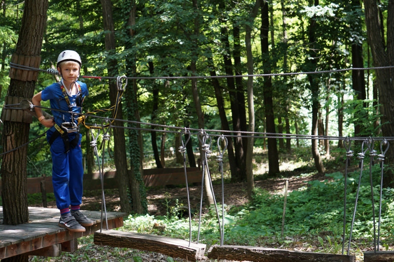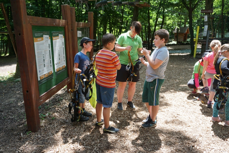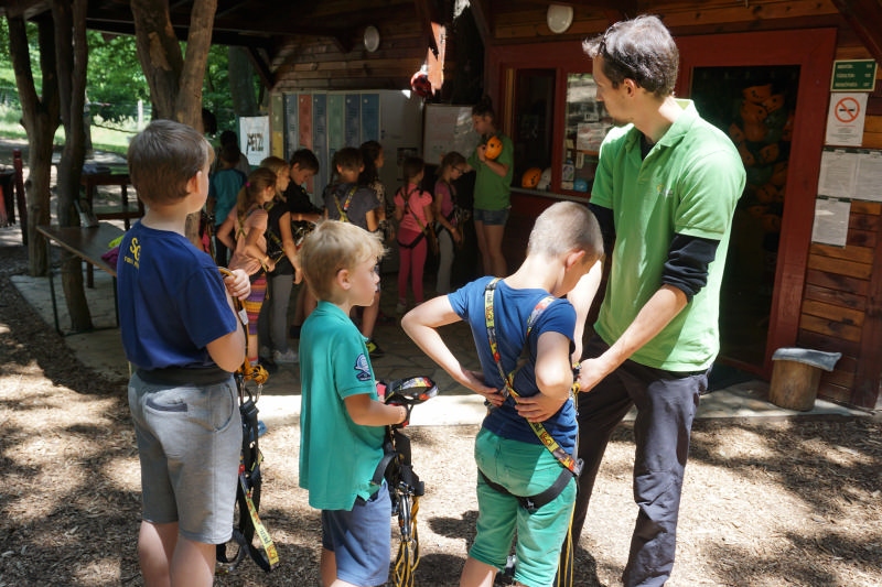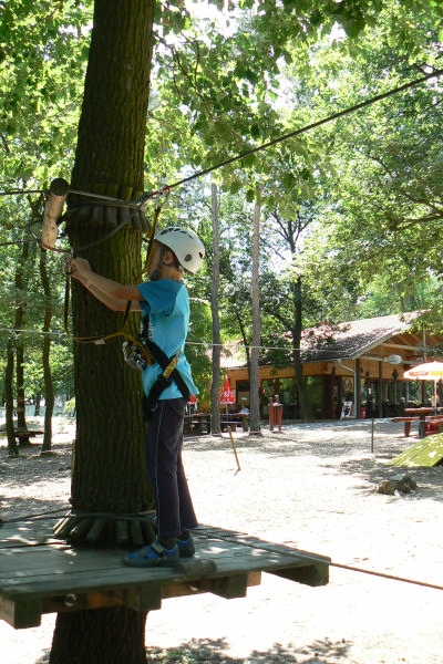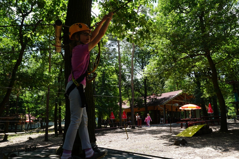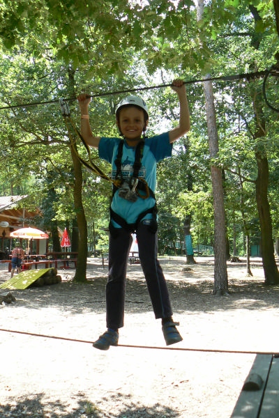 Hosszú túrára indult a kreszes csapat csütörtökön. A reggeli bemelegítő körök után a Holdfényliget felé vettük az irányt. Első körben azonban csak az utca végéig jutottunk, ott kis technikai hiba akadt, így vissza kellett fordulnunk. A suliban Béla bácsi gyorsan orvosolta a bűnös biciklik problémáit, hogy minél előbb útnak indulhassunk. A Gyöngyösfaluba vezető úton három szülő kísért minket, közülük ketten autóval, ha probléma adódna gyorsan cselekedhessünk. Erre azonban nem volt szükség, de azért nagy könnyebbség volt, hogy a csomagjaink a kocsikban utazhattak. A Holdfényligetbe érve a gyerekek izgatottan várták, hogy kipróbálhassák a kötélpályát. Rövid gyorstalpaló és egy pizza után már Maugliként csüngtek a köteleken. Hősiesen küzdötték végig magukat az akadályokon.