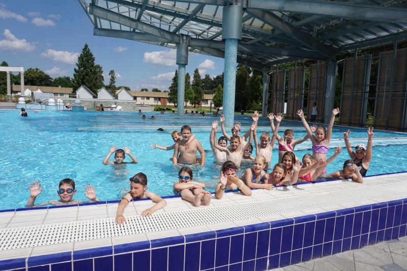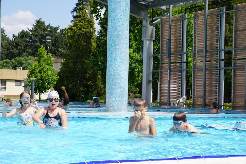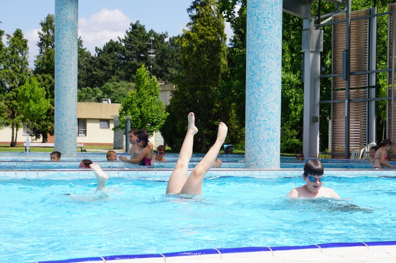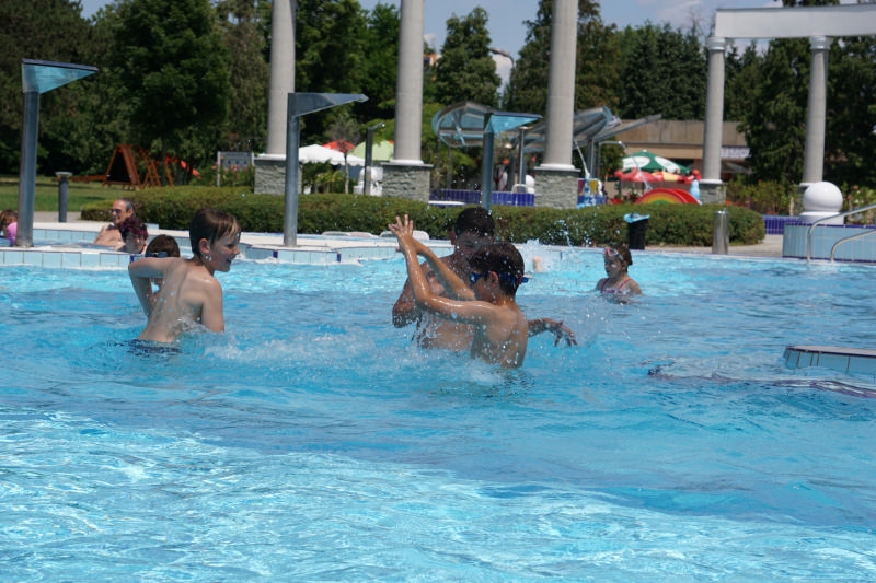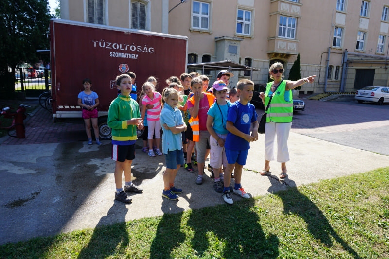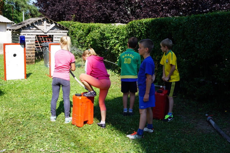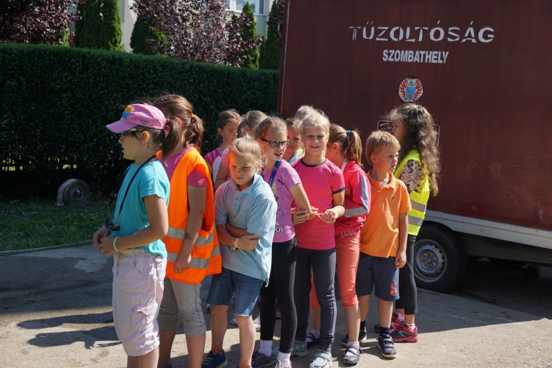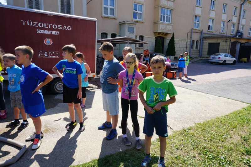 A tábor zárónapján elsőként megköszöntöttük szülinaposunkat, Patrikot (tényleg Patrikot) :-) majd a tűzoltóság felé vettük az irányt. Itt jót játszottak a gyerekek. Ezután elkerékpároztunk a fitness-parkba. Itt is mindenki megtalálta a kedvére való elfoglaltságot, ki kerékpározott, ki pedig az eszközöket próbálta sorra. Persze voltak olyanok is, akik inkább rápihentek a délutánra. Ebéd után a termál fürdőben zártuk a hetet.