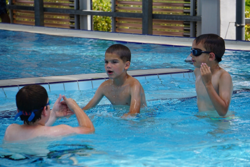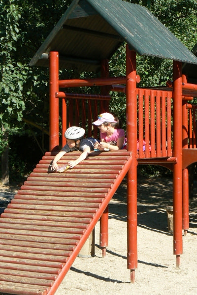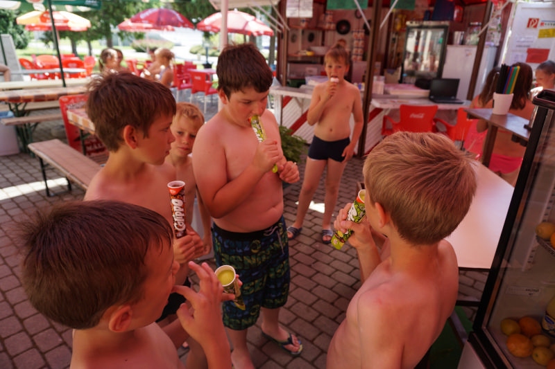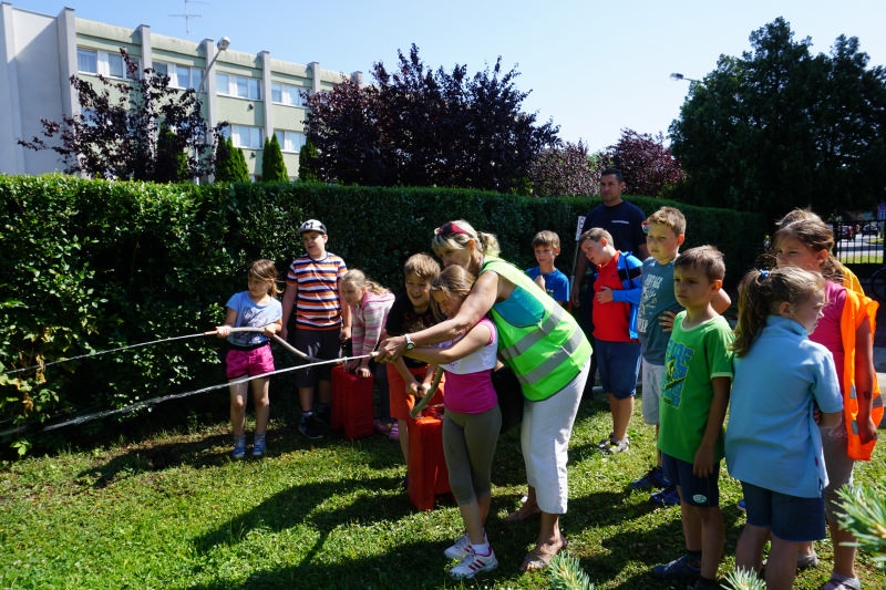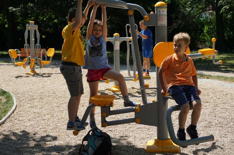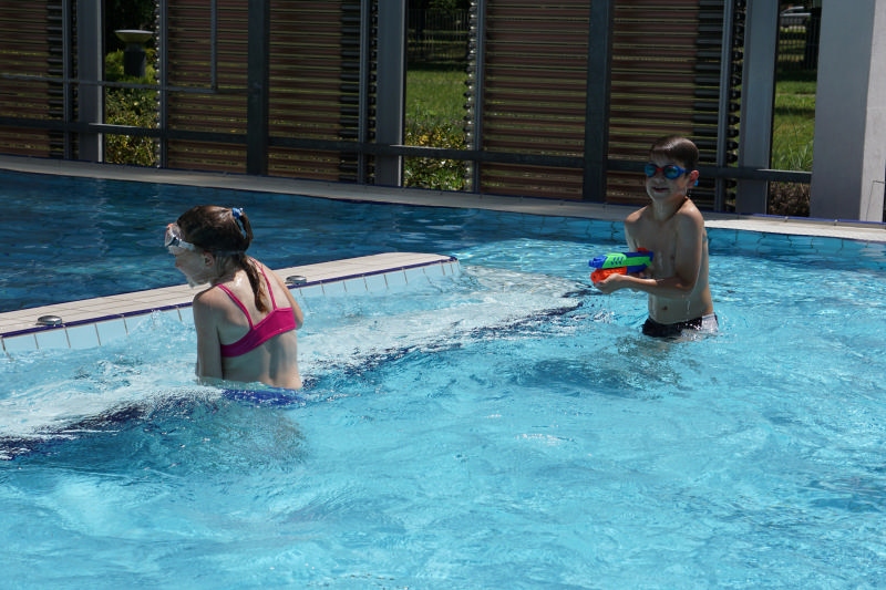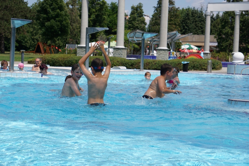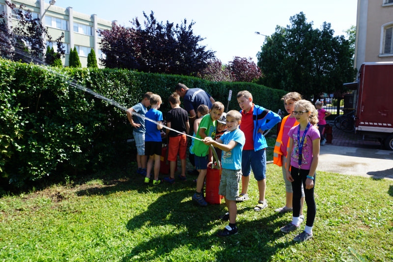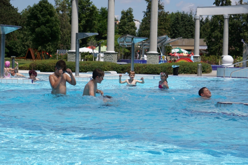 A tábor zárónapján elsőként megköszöntöttük szülinaposunkat, Patrikot (tényleg Patrikot) :-) majd a tűzoltóság felé vettük az irányt. Itt jót játszottak a gyerekek. Ezután elkerékpároztunk a fitness-parkba. Itt is mindenki megtalálta a kedvére való elfoglaltságot, ki kerékpározott, ki pedig az eszközöket próbálta sorra. Persze voltak olyanok is, akik inkább rápihentek a délutánra. Ebéd után a termál fürdőben zártuk a hetet.