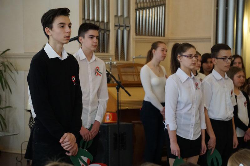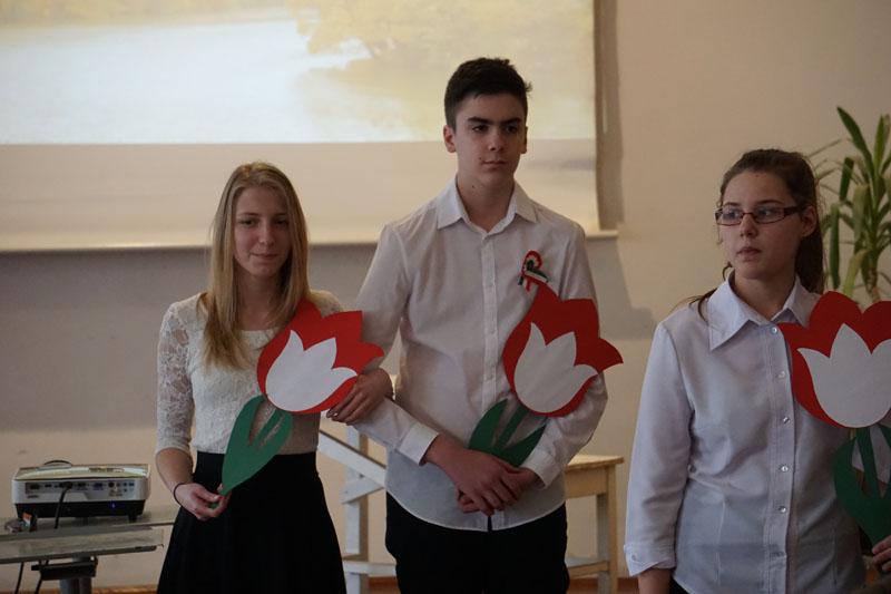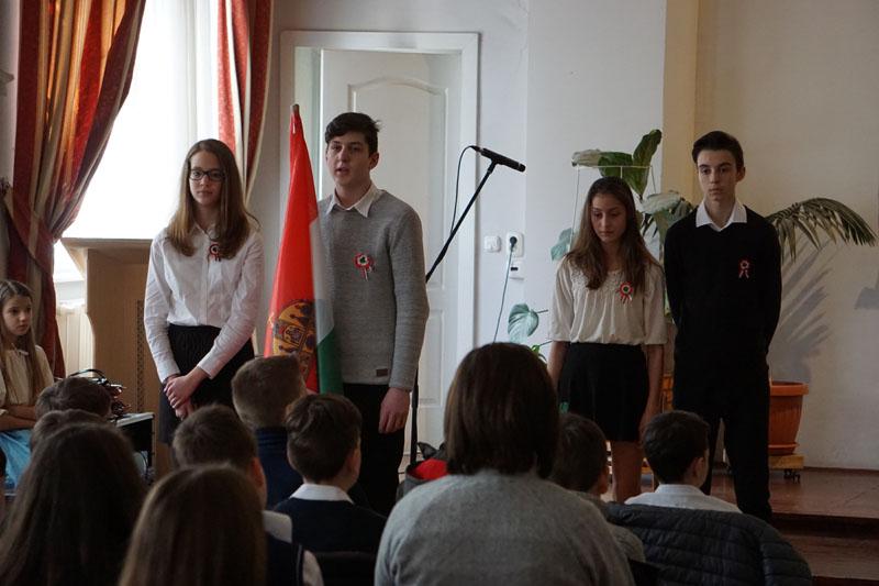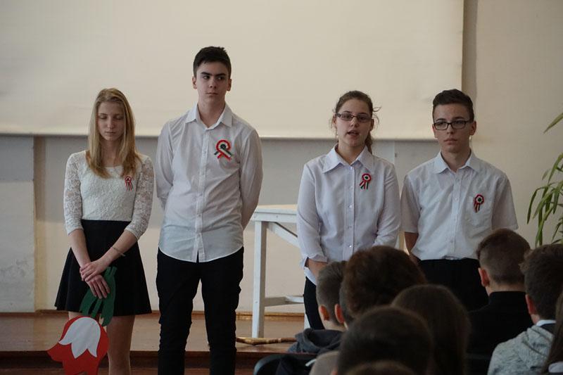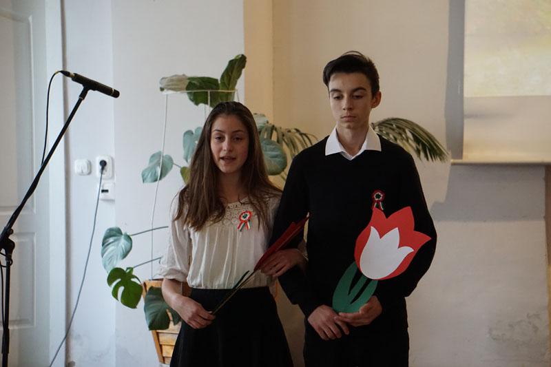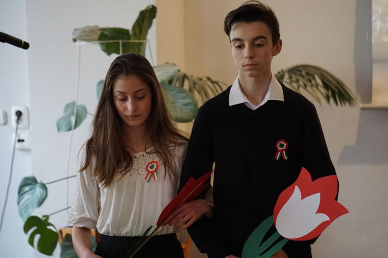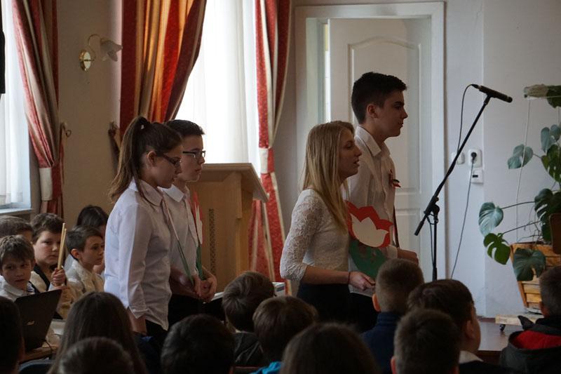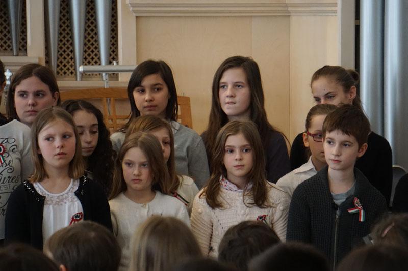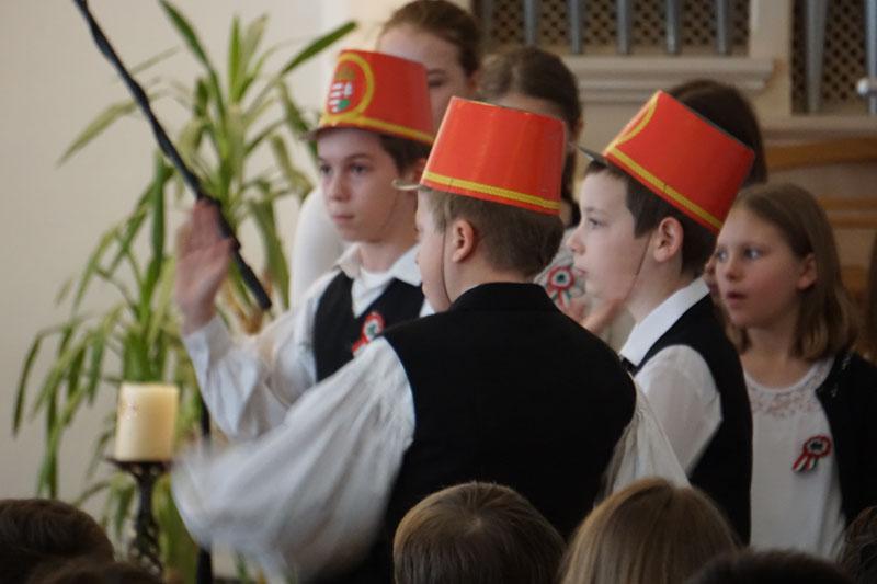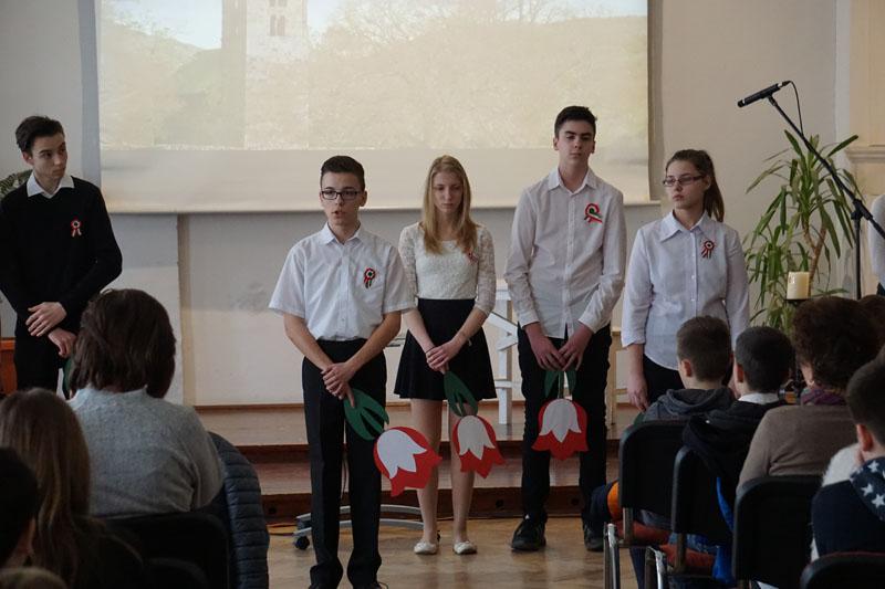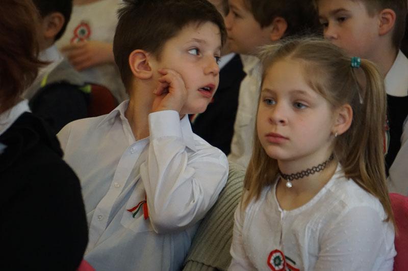 Az 1848-49-es forradalom- és szabadságharcra emlékeztek iskolánk diákjai. Tomcsányi-Kovács Szilvia tanárnő felkészítésével színvonalas műsort adtak elő társaiknak a felső tagozatosok.