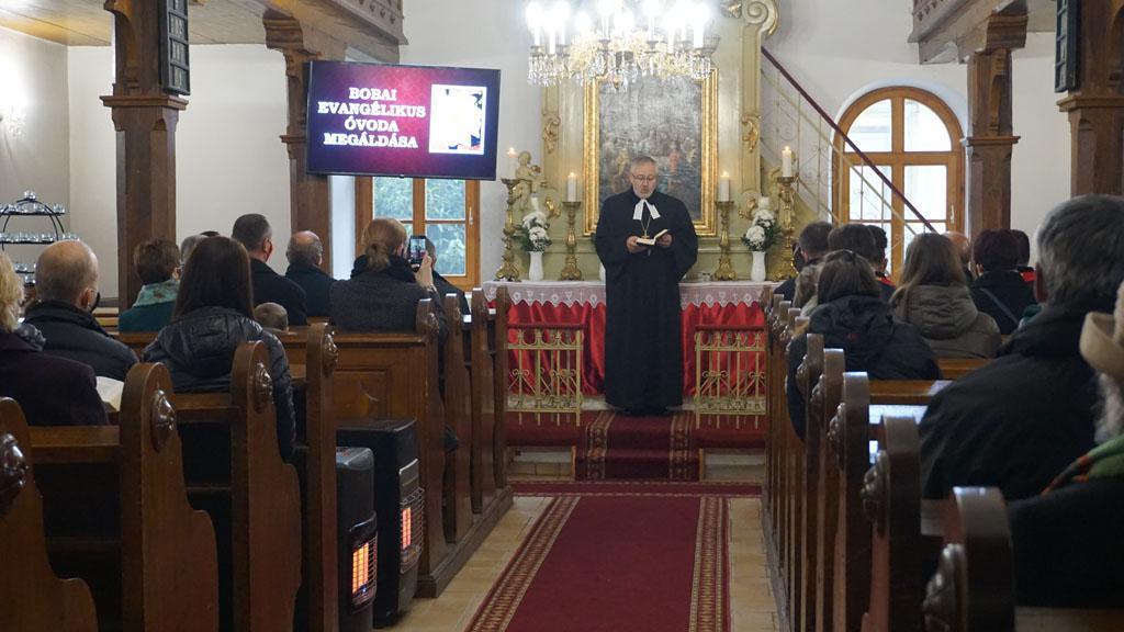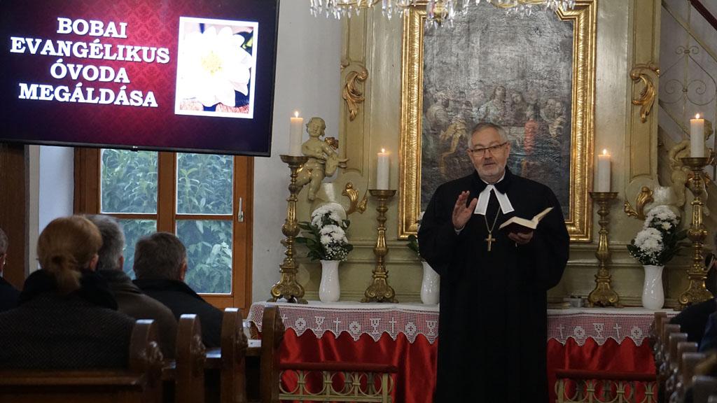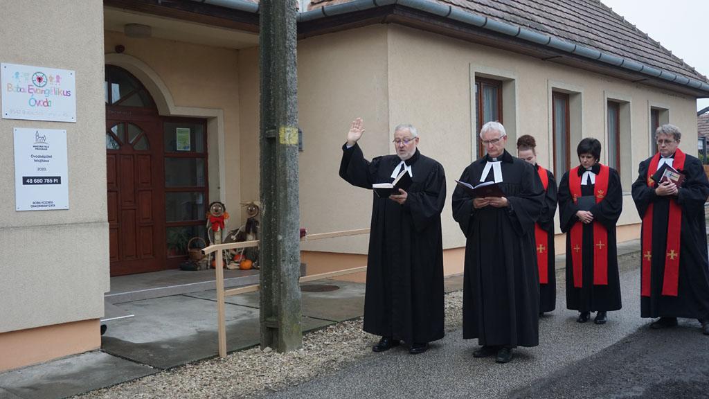 Az óvodai élet a felújítás ideje alatt sem állt le - csupán egy nyári szünetre -, hiszen az önkormányzat biztosított helyet az óvodások számára erre az időszakra. Augusztus 2-án már a megszépült épületbe léphettek be a gyerekek. Az ünnepélyes átadót augusztus 14-én tartották Somogyi Ákos polgármester és V. Németh Zsolt országgyűlési képviselő részvételével. November 13-án, szombat délután a Nyugati (Dunántúli) Evangélikus Egyházkerület püspöke, Szemerei János érkezett Bobára, hogy megáldja a felújított intézményt. A megáldás előtt ünnepi istentiszteletet tartottak az evangélikus templomban, majd az ünneplők közösen átvonultak az intézmény elé, ott került sor az ünnepi pillanatra. Ezt követően Horváthné Görög Marianna tagintézmény-vezető körbevezette a megjelenteket a megszépült óvodában.