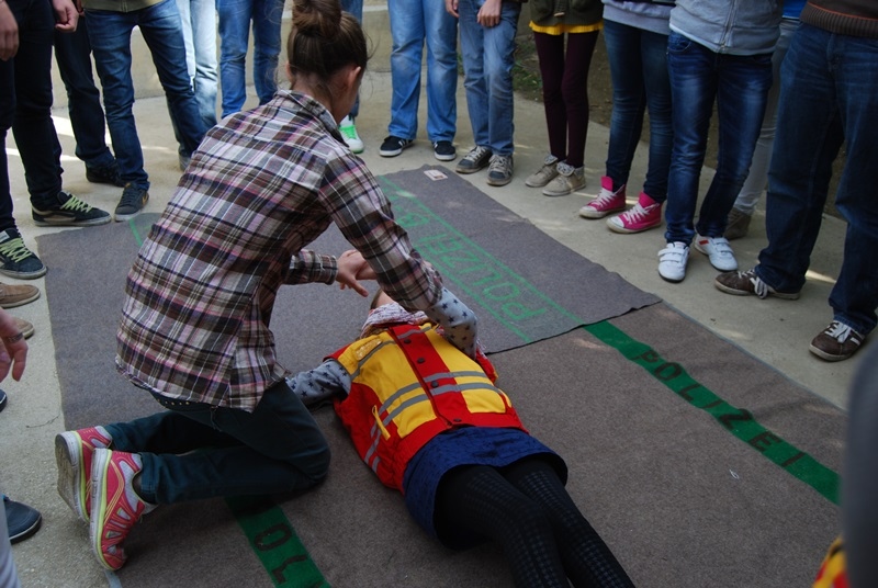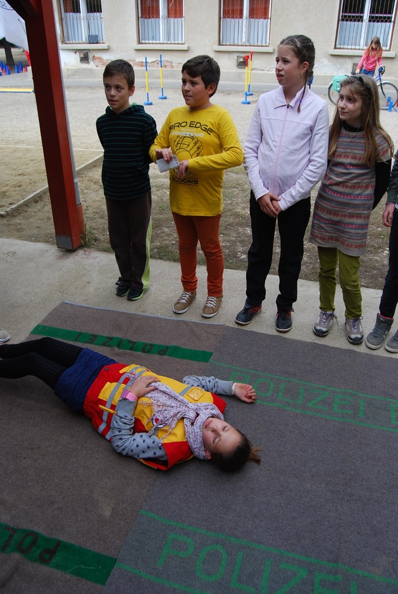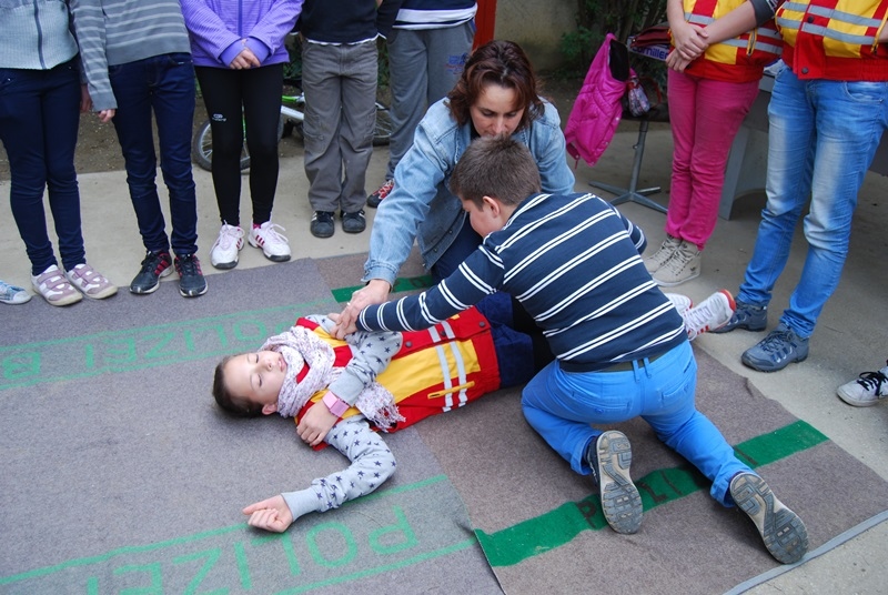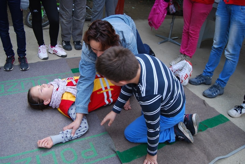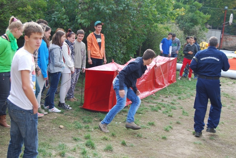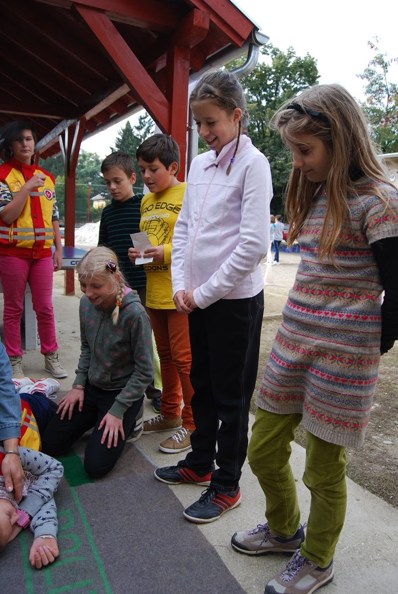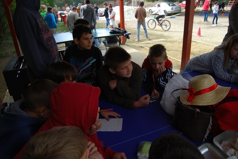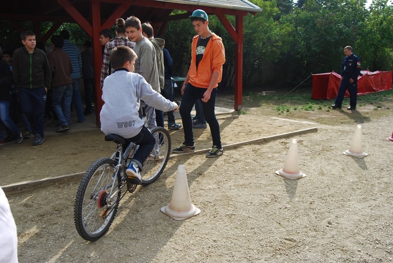 Első nap a felső tagozat, valamint a 4. évfolyam vett részt a programokon. Az oszályok különböző állomásokon bizonyíthatták tudásukat. Többek között: lassúsági és ügyességi pálya, táblafelismerés, kúszó folyosó, elsősegély nyújtás és szelektív "horgászás" szerepelt a programok között.